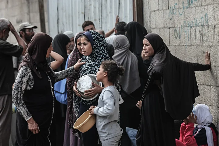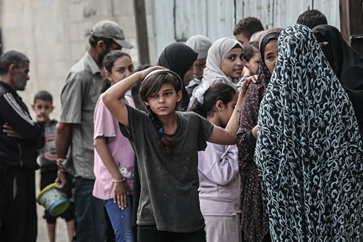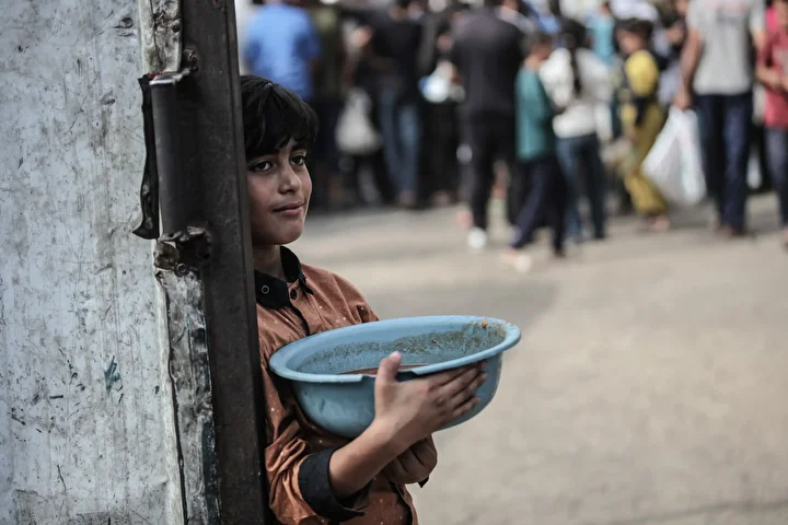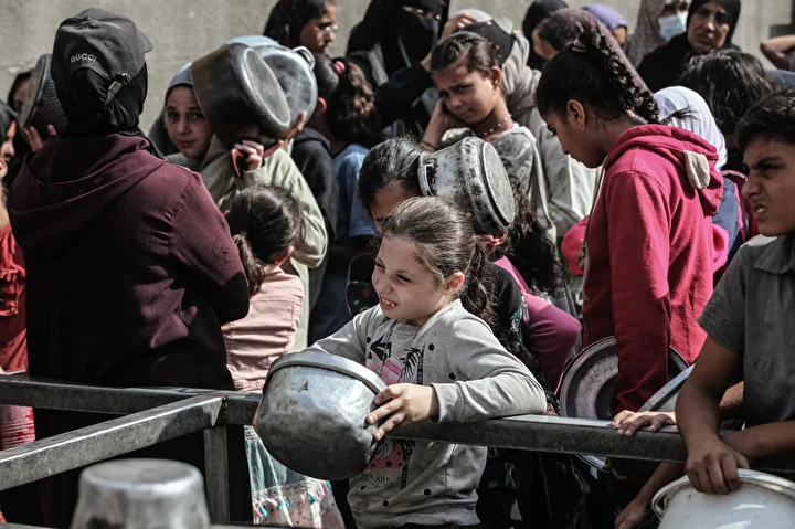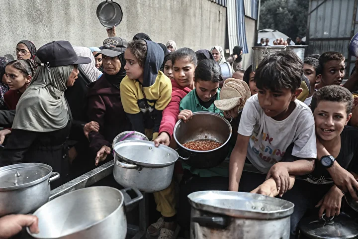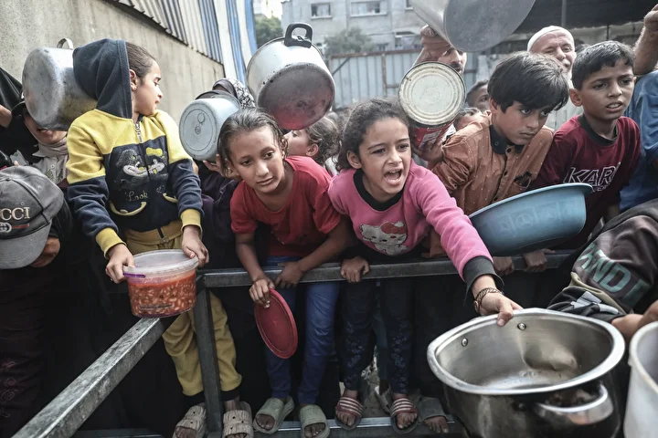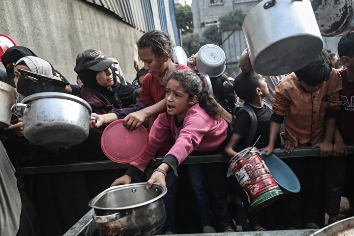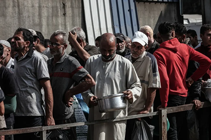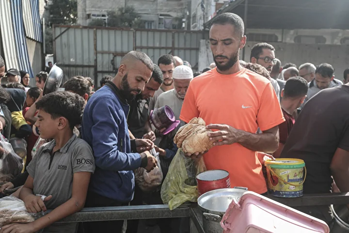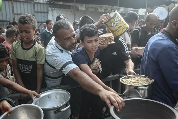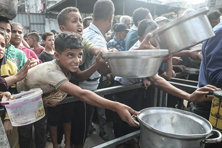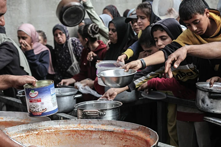 Gazze’nin orta kesimindeki Nuseyrat Mülteci Kampı’nda bir hayır kurumu tarafından İsrail saldırıları sonucu yerinden edilmiş Filistinlilere sıcak yemek dağıtımı yapıldı. Dağıtım sırasında aralarında kadın ve çocukların da bulunduğu çok sayıda kişi uzun kuyruklar oluşturdu.