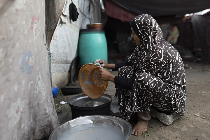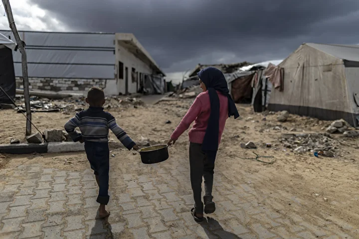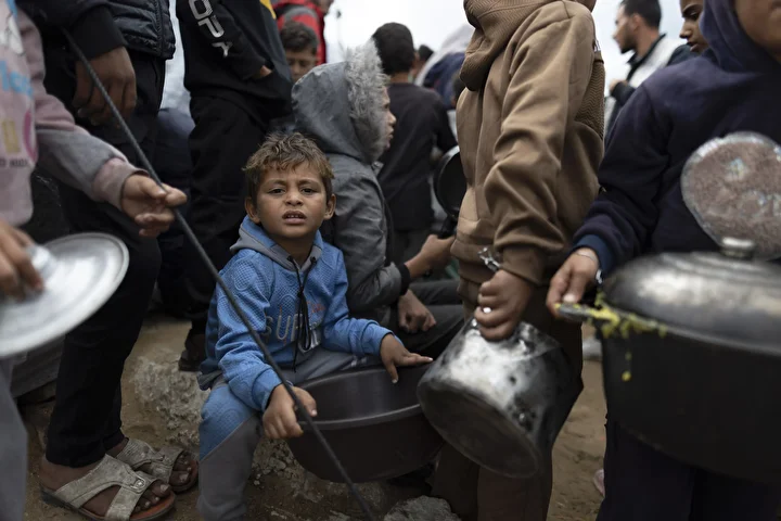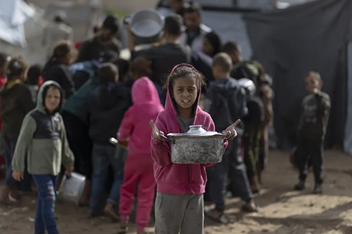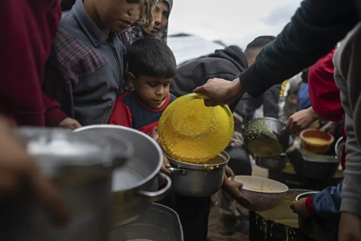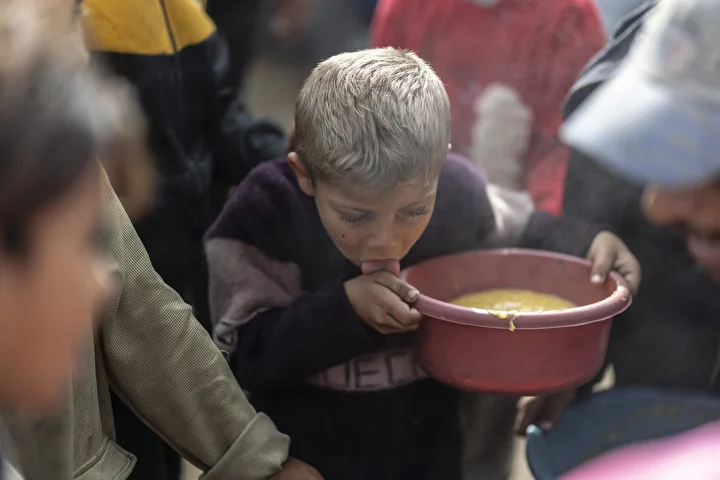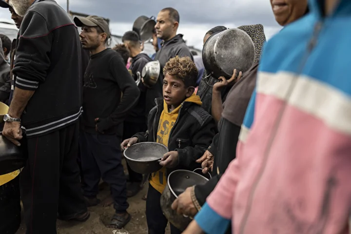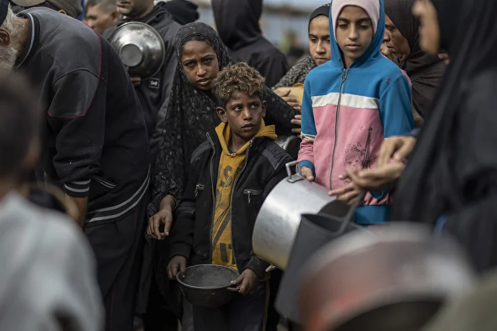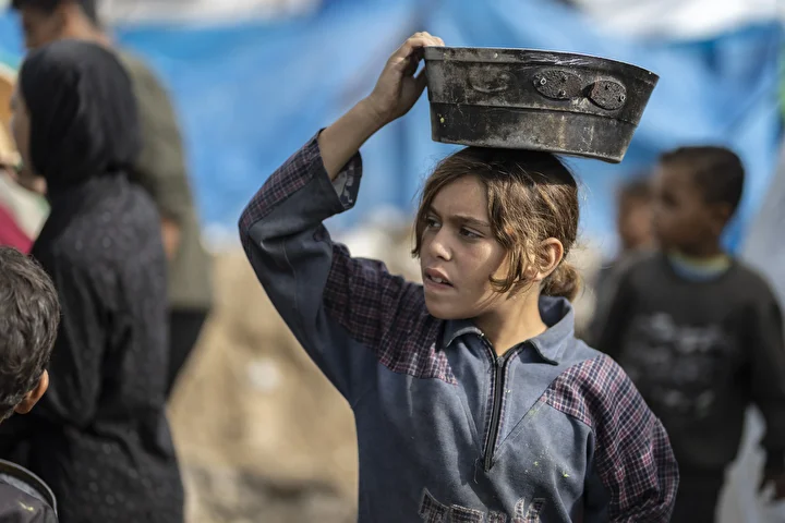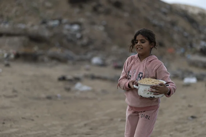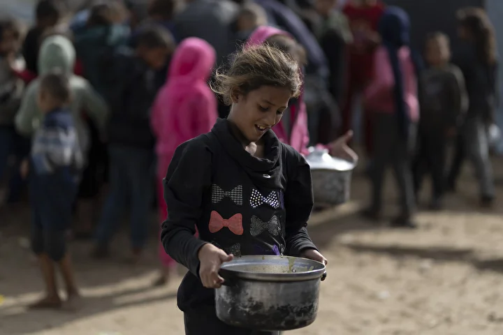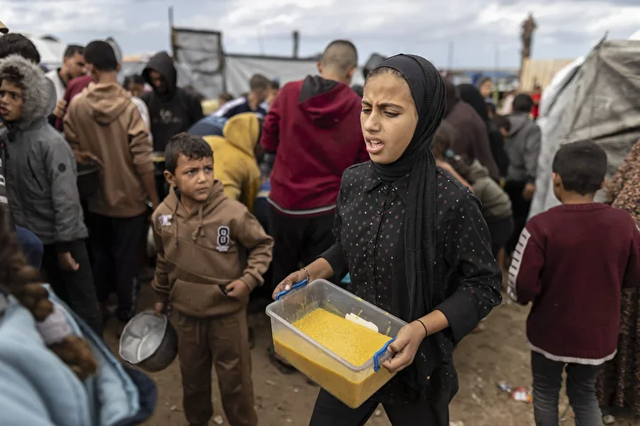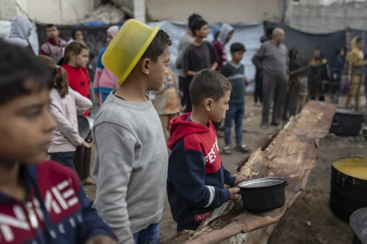 Gazze kentinin batısında bir hayır kurumu tarafından İsrail saldırıları sonucu yerinden edilmiş Filistinlilere sıcak yemek dağıtımı yapıldı. Dağıtım sırasında aralarında kadın ve çocukların da bulunduğu çok sayıda kişi yoğunluk oluşturdu.
