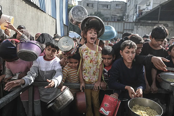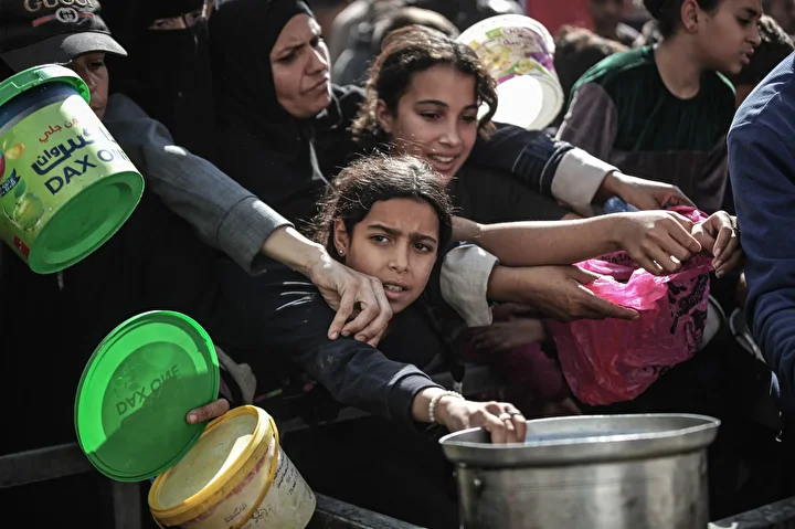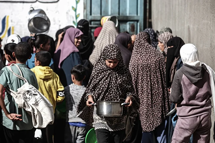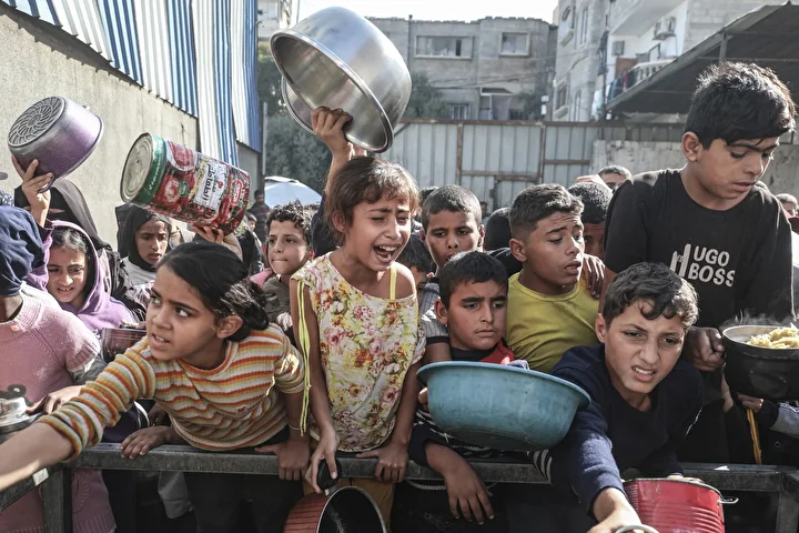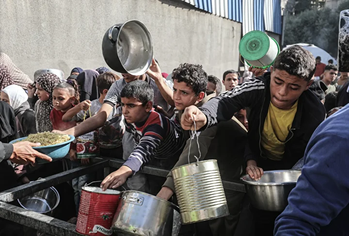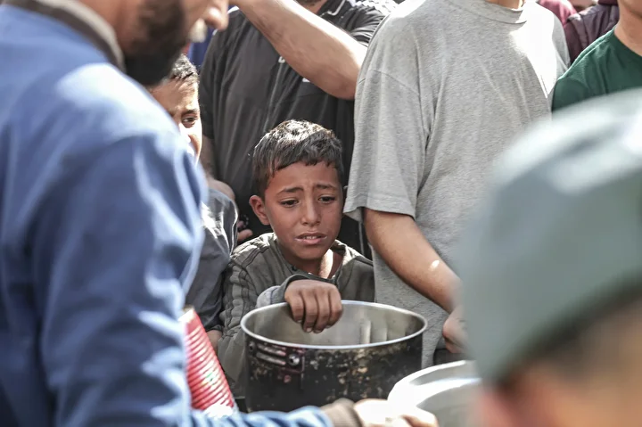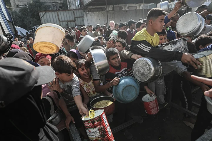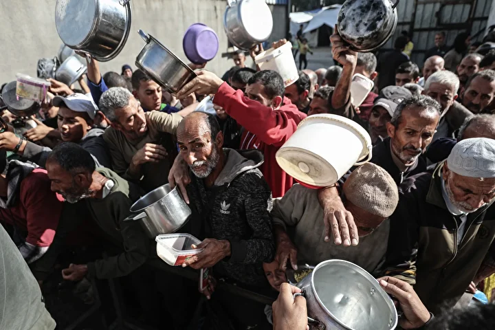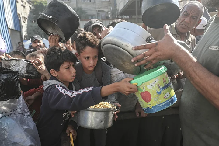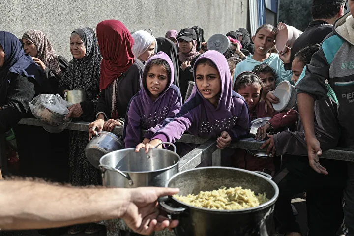 Gazze'de ateşkesin sağlanmasına rağmen kente giren insani yardımların kısıtlı olması nedeniyle gıda krizi devam ediyor. Gazze'nin Nuseyrat Kampı'ndaki bir hayır kurumu, yerinden edilen Filistinlilere yemek dağıttı.