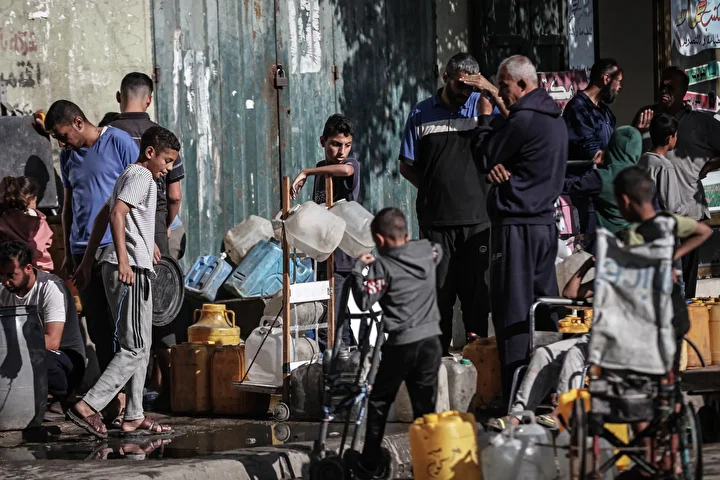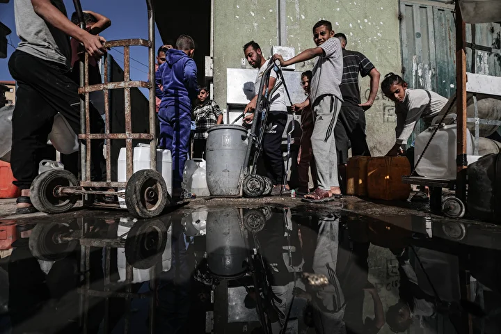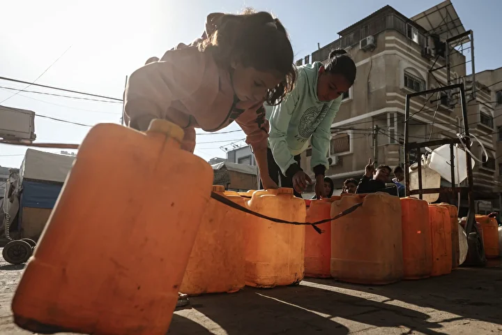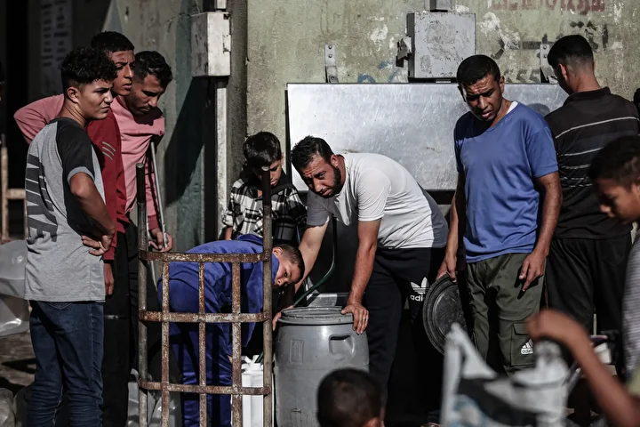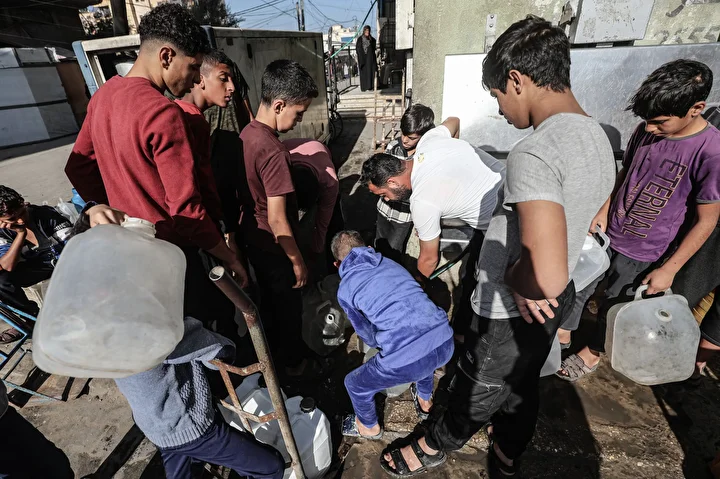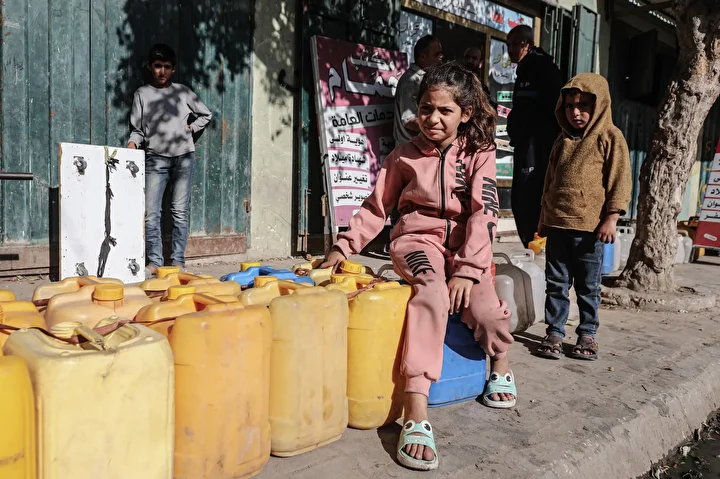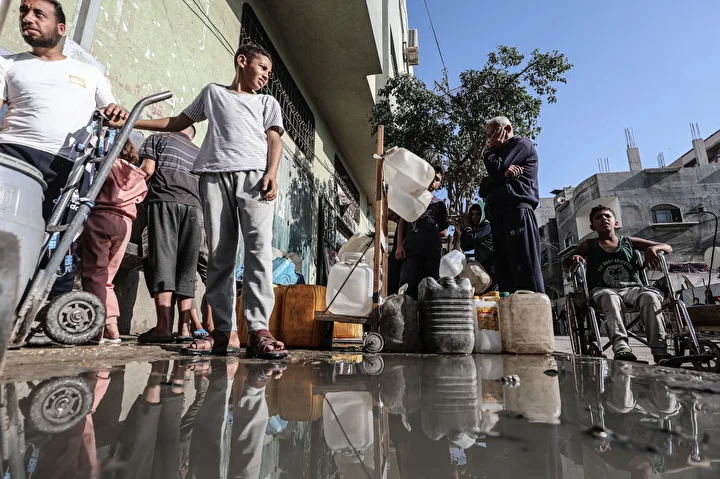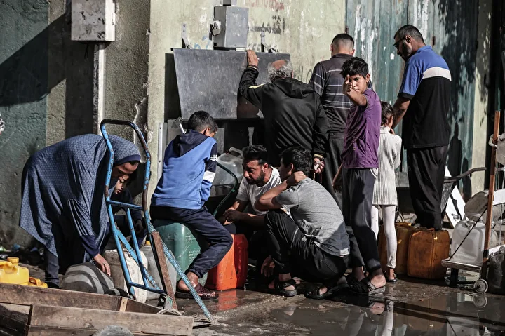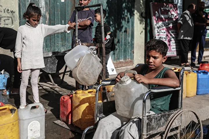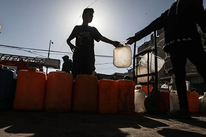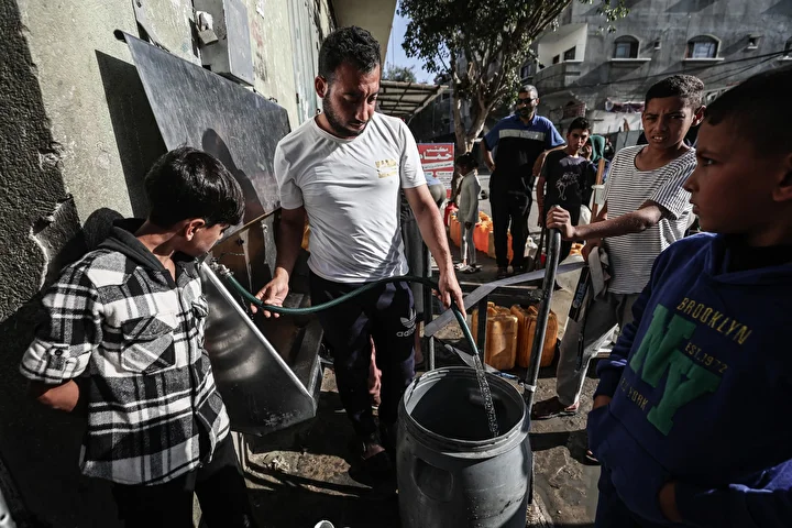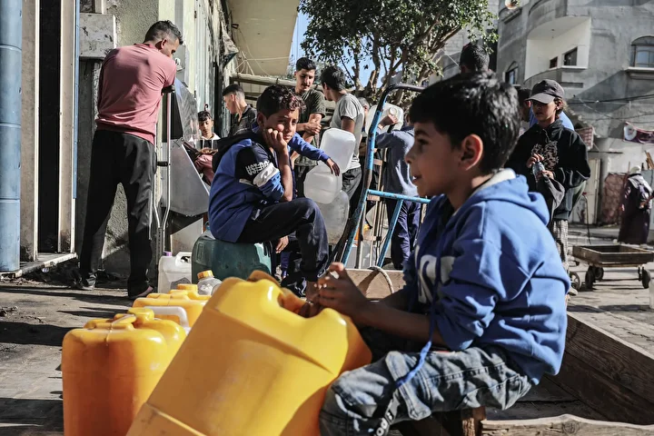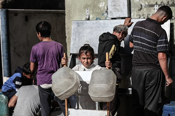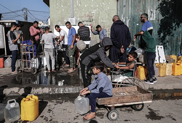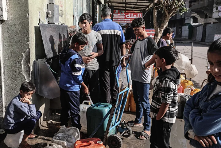 Gazze’de ateşkes sağlanmasına rağmen, İsrail saldırılarında altyapının ağır hasar görmesi nedeniyle bölgede su krizi sürüyor. Nuseyrat Kampı’ndaki Filistinliler, belediyenin kurduğu su deposundan bidonlarla su doldurarak yaşam alanlarına taşımak zorunda kalıyor.