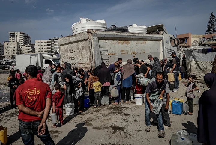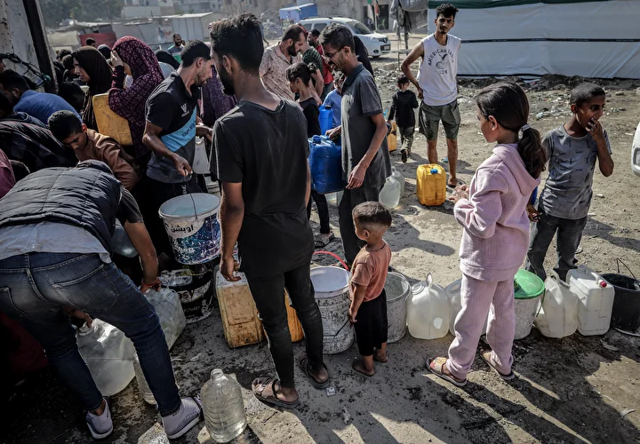 İsrail’in iki yılı aşkın süredir sürdürdüğü saldırılar sonucu Gazze Şeridi’nde altyapı ağır hasar gördü. Ateşkesin ardından ekipman eksikliği ve su şebekesindeki tahribat nedeniyle birçok bölgeye temiz su tankerlerle ulaştırılıyor. Gazze kentinde yardım kuruluşları tarafından dağıtılan sudan almak isteyen Filistinliler uzun kuyruklar oluşturdu.