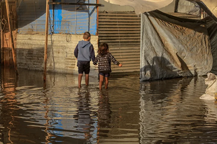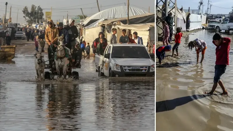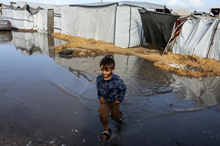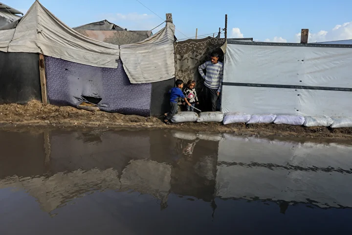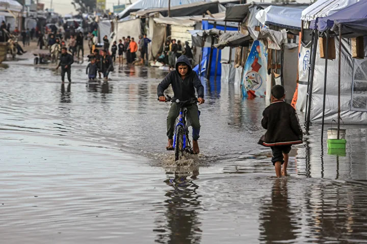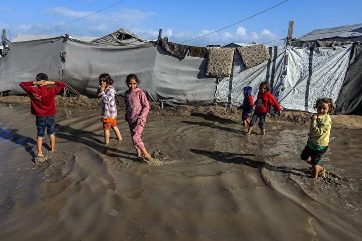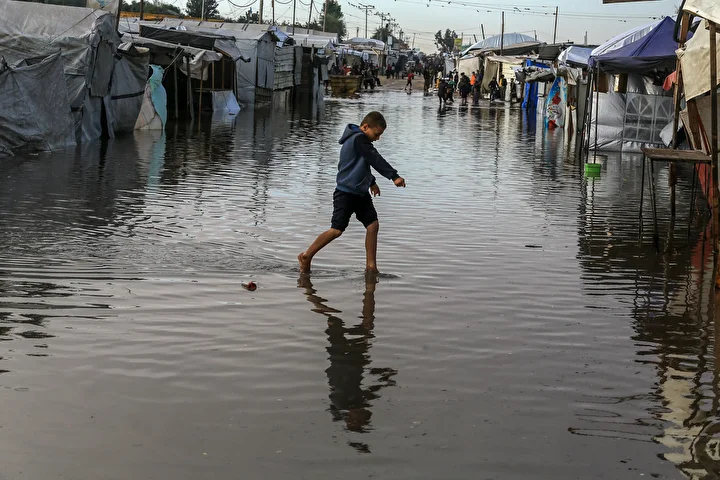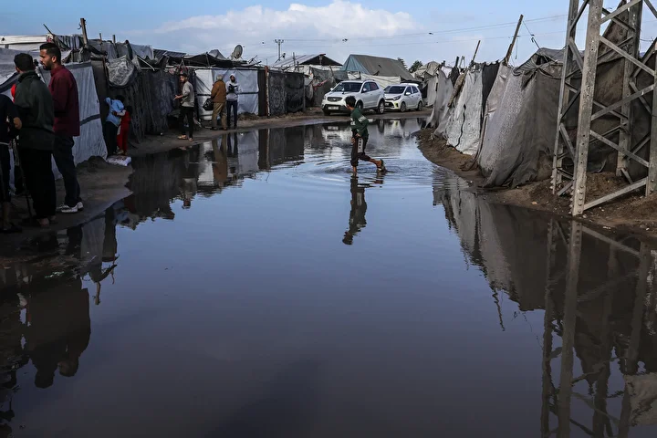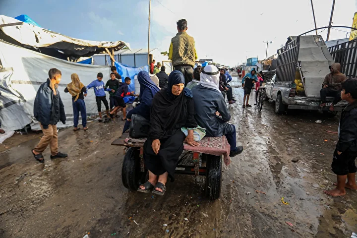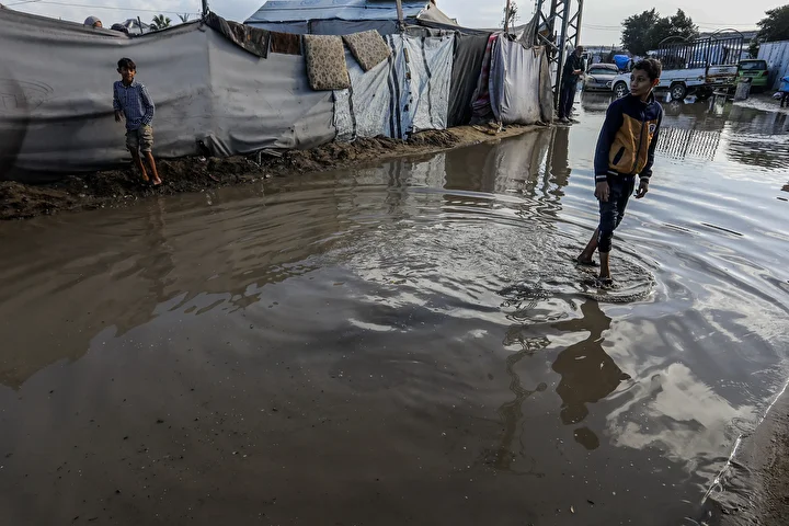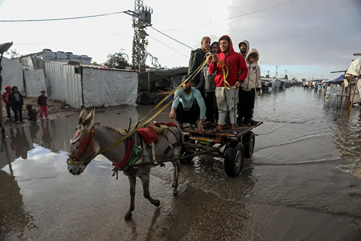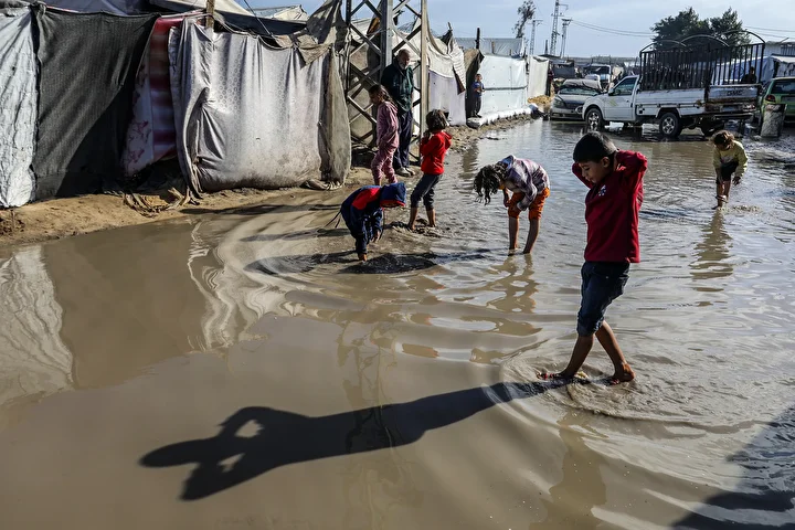 İsrail'in Gazze Şeridi’ne yönelik saldırıları nedeniyle evleri yıkılan ve Han Yunus kentine bağlı Mavasi bölgesinde yaşayan yerinden edilmiş Filistinliler, etkili olan sağanak yağış ve soğuk hava nedeniyle zor günler geçiriyor. Çadırları su altında kalan aileler, yağmur nedeniyle oluşan su birikintileri arasında hayatta kalma mücadelesi veriyor. Bazı Filistinliler, tamamen suyla kaplanan sokaklarda ulaşımı sağlayabilmek için eşek arabalarını kullanırken, çocuklar ise çadırlar arasındaki yağmur sularıyla dolu alanlarda yürümek zorunda kalıyor.
