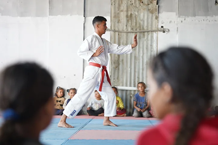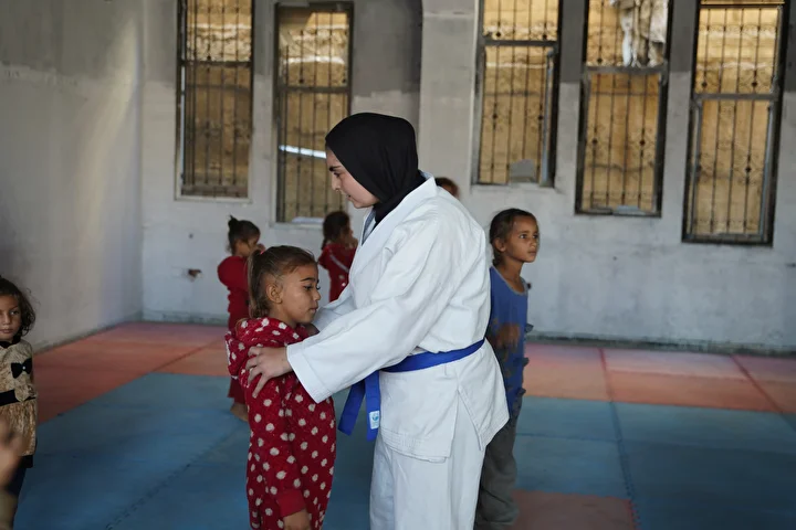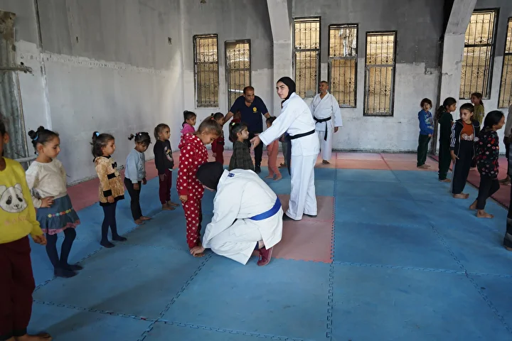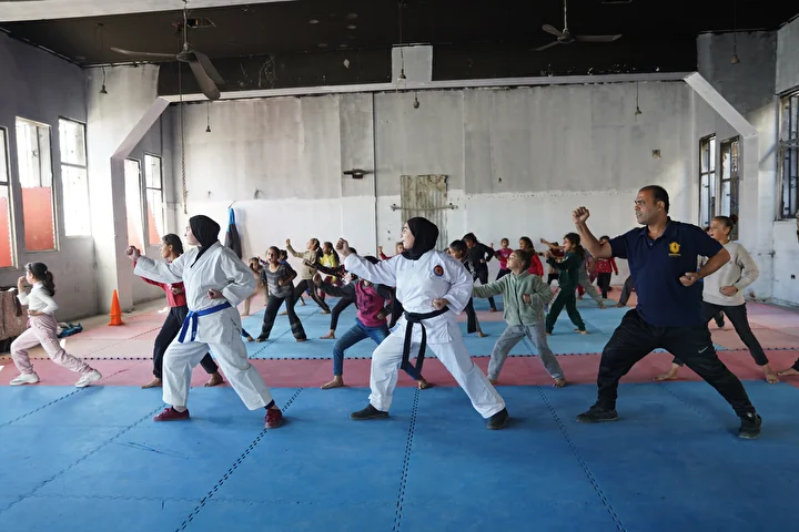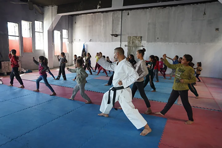İsrail'in 2 yıllık soykırımında büyük hasar alan ve yakılan Gazze kentindeki El-Meştel Spor Kulübü, Filistinli çocukları saldırı atmosferinden ve olumsuz psikolojik sonuçlarından kurtarmak için kısıtlı imkanlarla da olsa faaliyetlerine başladı. Antrenörler, kulüpte çocuklara ve gençlere yeniden savunma sporları öğretiyor.