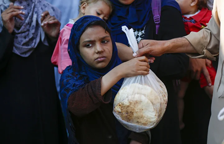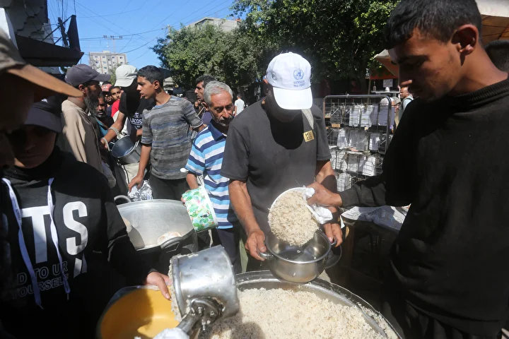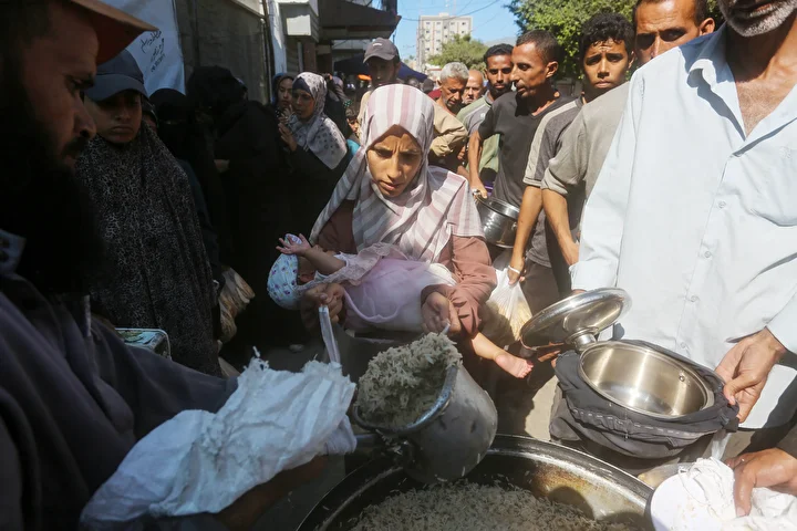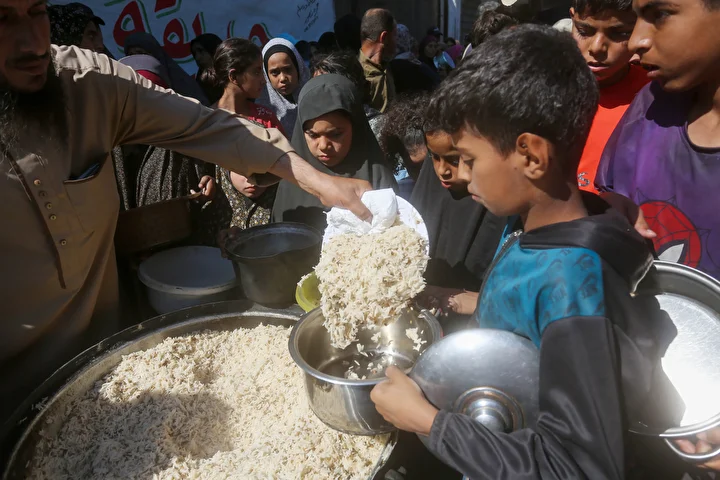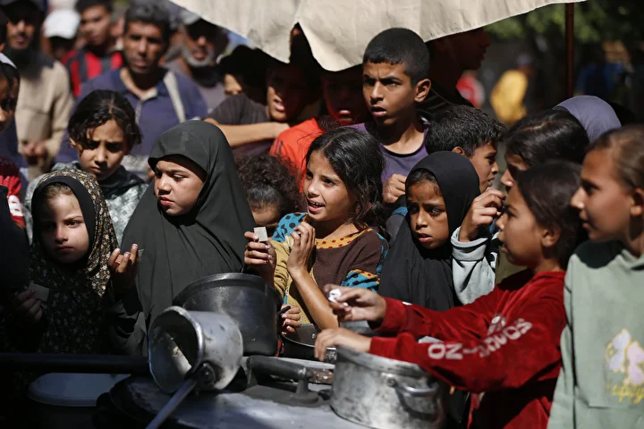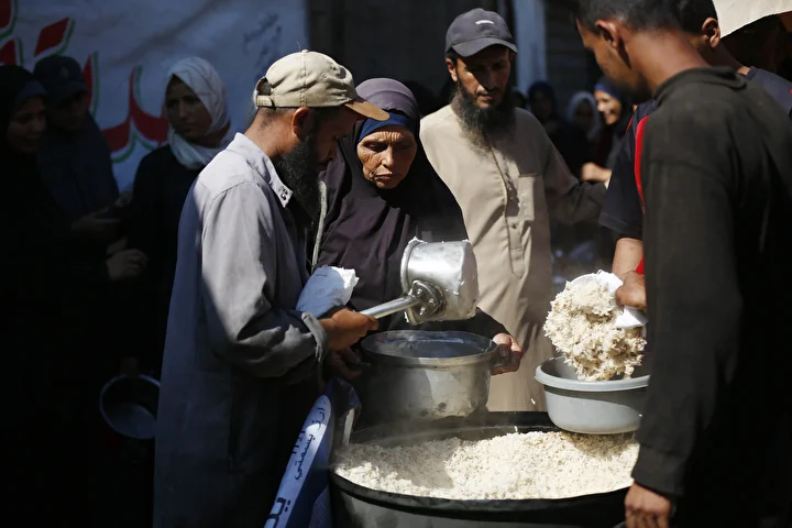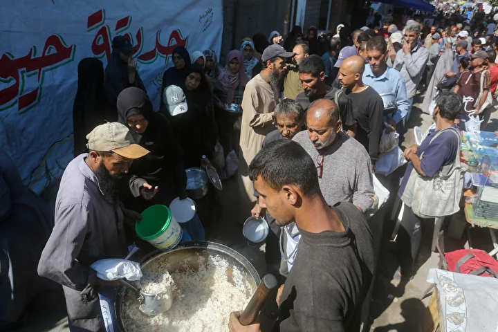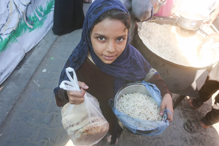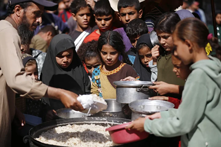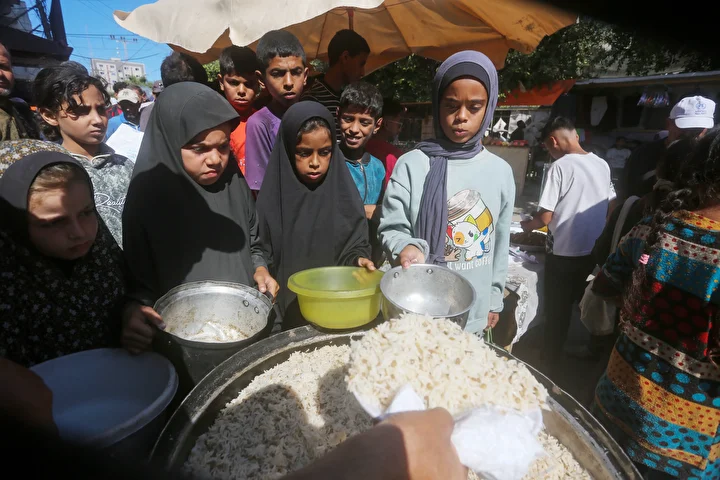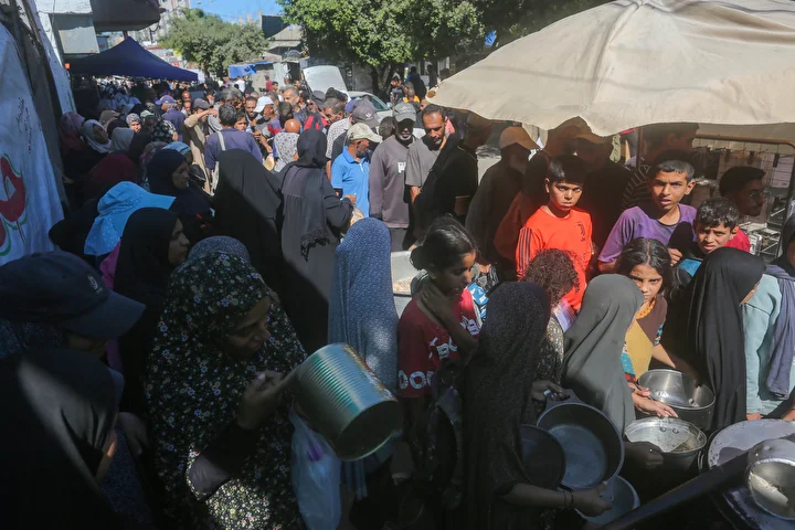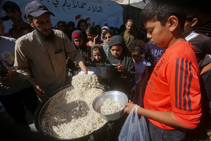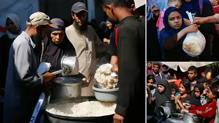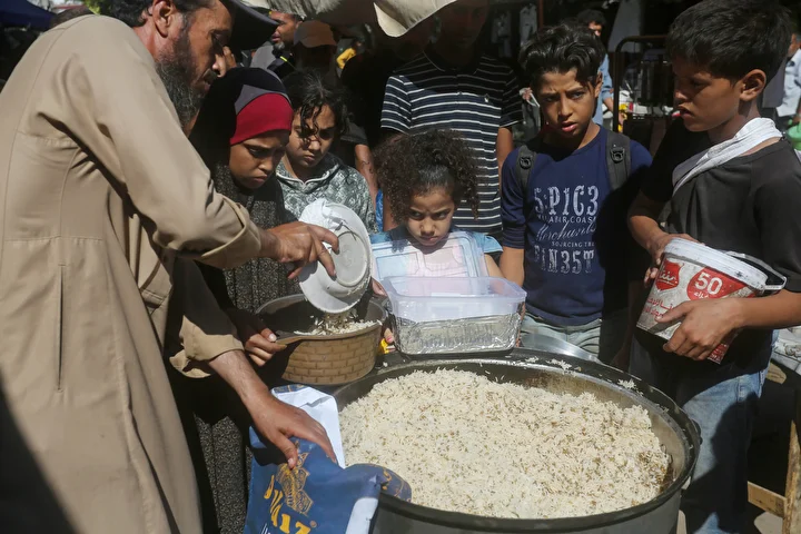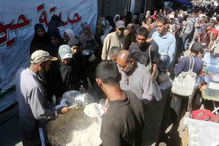 Gazze Şeridi’ndeki Deyr Belah kentinde, aralarında kadın ve çocukların da bulunduğu çok sayıda Filistinli, hayır kurumları tarafından dağıtılan yemeklerden alabilmek için kuyruklar oluşturdu. İsrail saldırıları nedeniyle yerinden edilen binlerce kişi, hayatta kalabilmek için bölgedeki yardım kuruluşlarının sağladığı gıdaya muhtaç durumda.