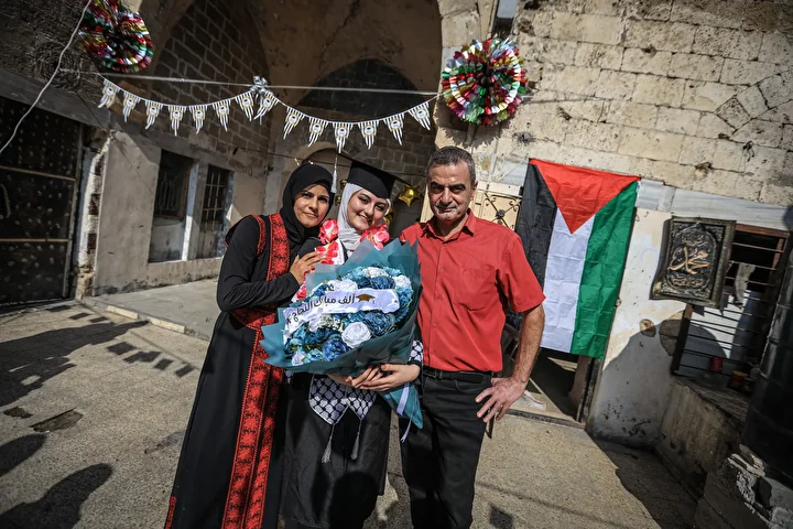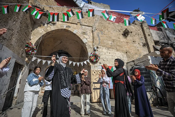 Filistin Eğitim Bakanlığı, Gazze Şeridi'nde okulları yıkıp aileleri yerinden eden İsrail'in yoğun saldırıları nedeniyle iki yıllık aranın ardından gerçekleştirilen lise bitirme sınavı sonuçlarını açıkladı. İsrail saldırılarında evleri yıkılan ve defalarca göç etmek zorunda kalan Filistinli İman Lulu, yaşadığı zorluklara rağmen sınavda elde ettiği başarıyı ailesiyle Gazze'de kutladı.