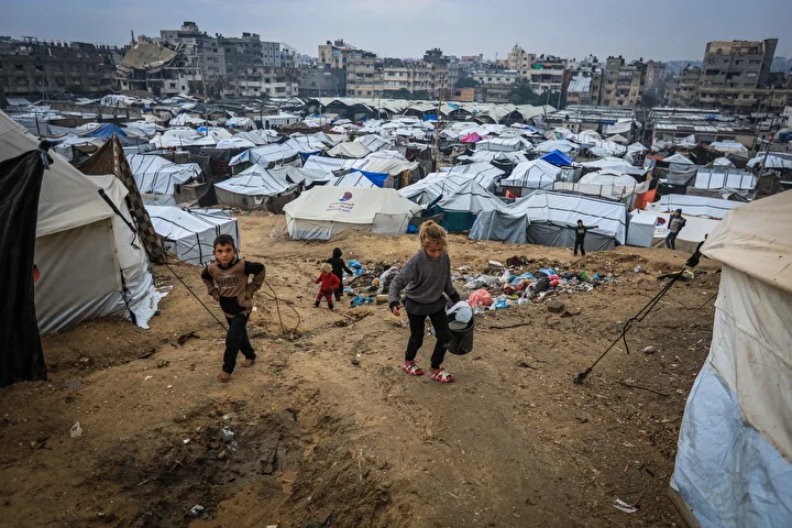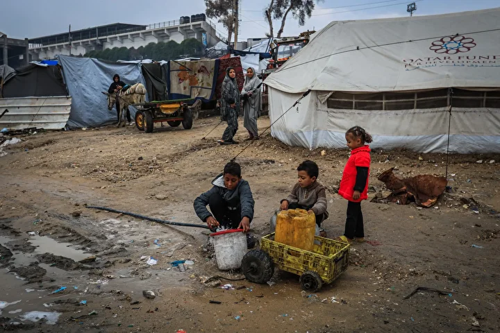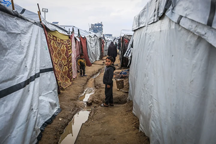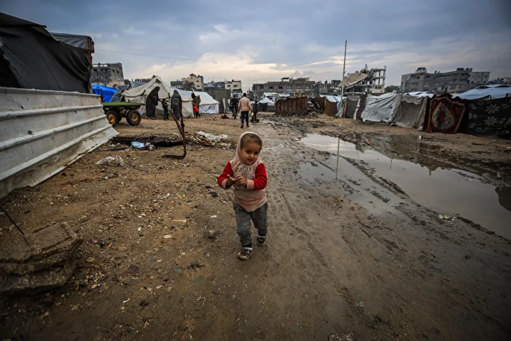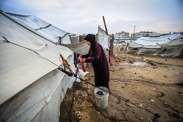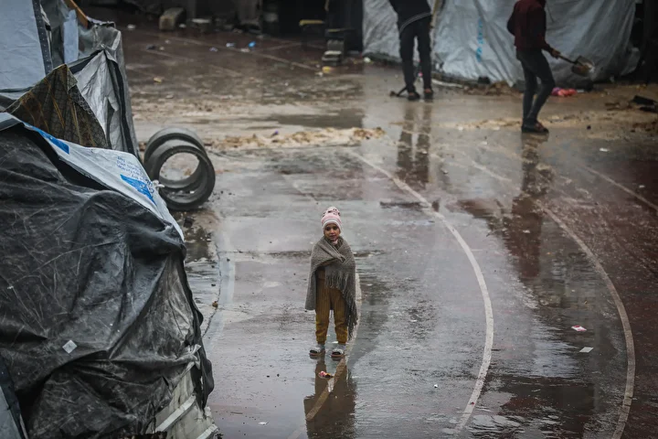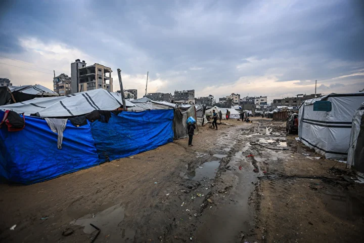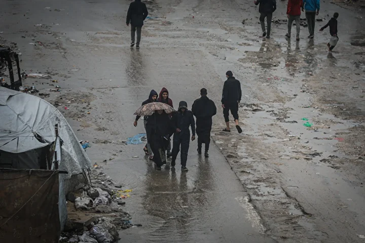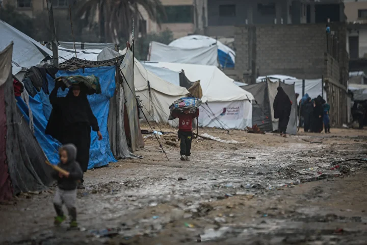 Abluka altındaki Gazze kentinin kuzeydoğusundaki Yermuk Mülteci Kampı'nda, iki gündür devam eden şiddetli yağış nedeniyle evleri yıkılan Filistinlilerin kaldığı çadırları su bastı. Yağmur nedeniyle bölgede su ve çamur birikintileri oluştu.