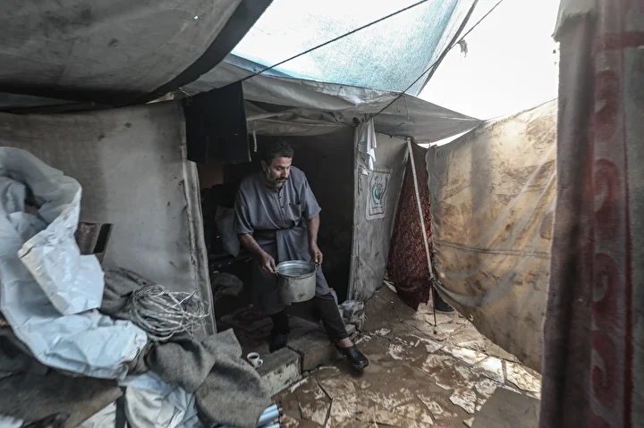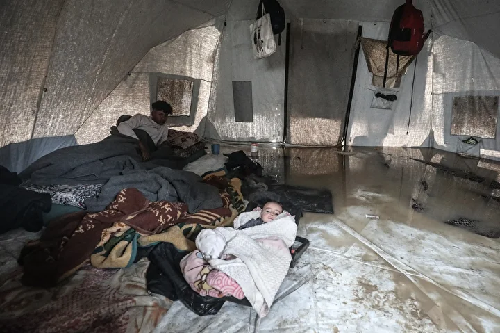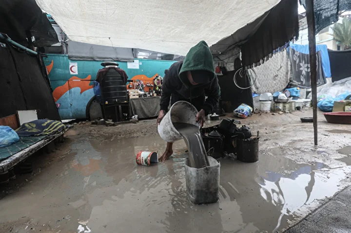 Gazze Şeridi'nde iki gündür devam eden şiddetli yağış nedeniyle yerinden edilmiş Filistinlilerin yaşadığı yüzlerce çadır sular altında kaldı. Gazze Şeridi’nin orta kesimindeki Bureyc Mülteci Kampı’nda sağanak yağış sebebiyle yerinden edilmiş Filistinlilerin kaldığı birçok çadırı su bastı. Yağış sonrası su ve çamur birikintilerinin oluştuğu bölgede yaşamlarını sürdüren ve İsrail'in saldırıları nedeniyle evleri yıkılan Filistinli aileler yağış nedeniyle zor anlar yaşadı.