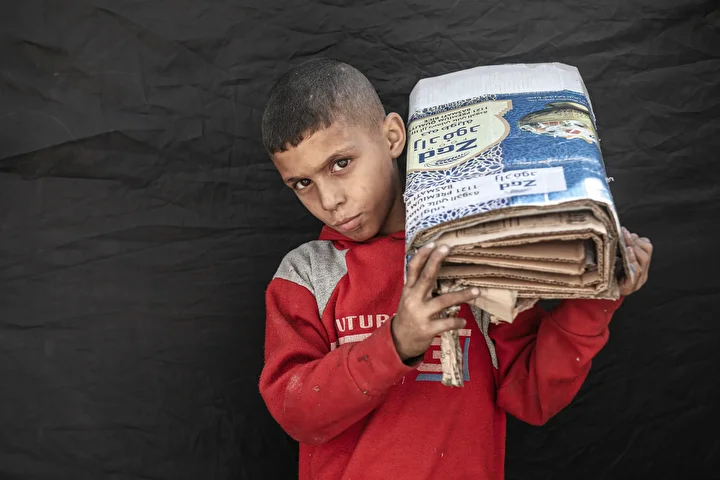 İki yılı aşkın süredir devam eden savaş ve yıkımın ardından Gazze’nin orta kesimindeki Bureyc Mülteci Kampı’nda yaşayan çocuklar, eğitim ve oyundan uzak, insanca yaşamın en temel haklarından mahrum bırakıldı. Çocukların tek uğraşı, yardım noktalarındaki uzun kuyruklarda beklemek, su taşımak ve ailelerine destek olabilmek için odun ile karton toplamak oldu.