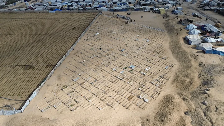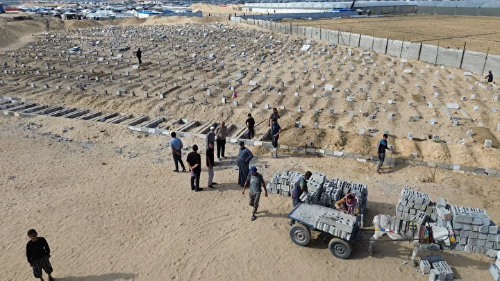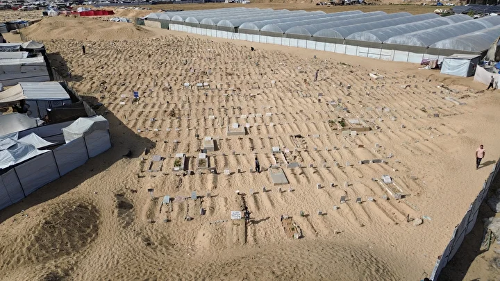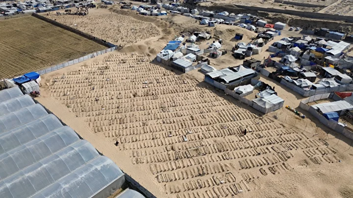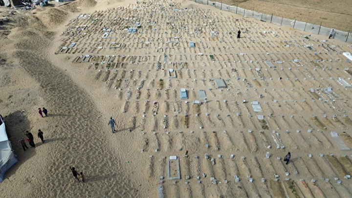 İsrail ile Hamas arasında sağlanan ateşkesin ardından, Katil İsrail'in saldırılarında ölen yakınlarını defnetmek isteyen Gazzeliler, boş mezar bulmakta zorlanıyor. Gazze Şeridi'nin güneyindeki Han Yunus'ta bulunan Cezayir Vakfı ve Türk Mezarlık'larında yeni alanlar eklendi. Evlerini yıkılan ve kalacak yer bulamayan Filistinliler, mezarlık çevresinde kurdukları çadırlarda yaşamlarını sürdürüyor.