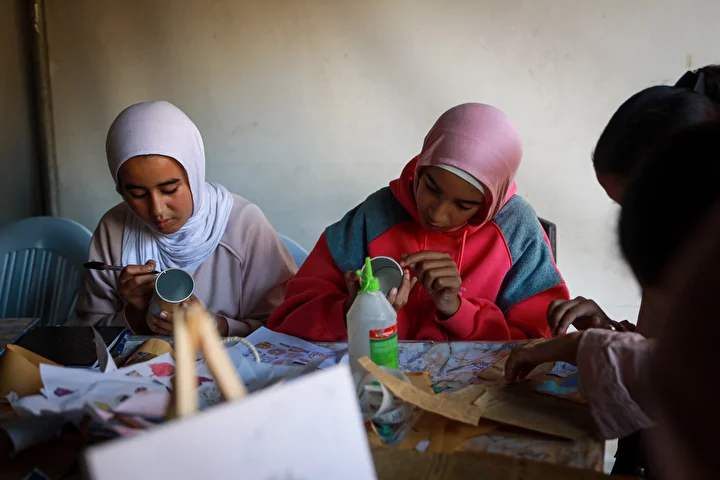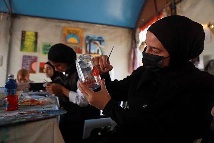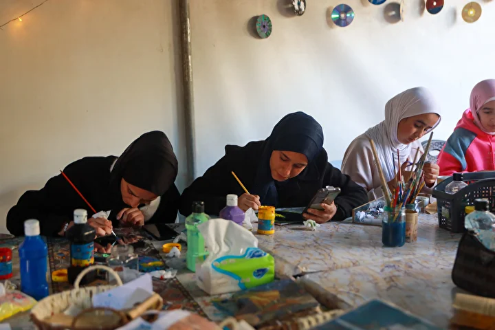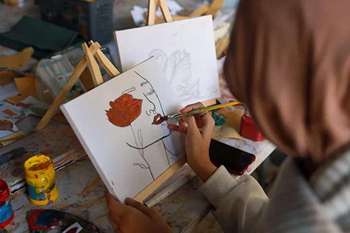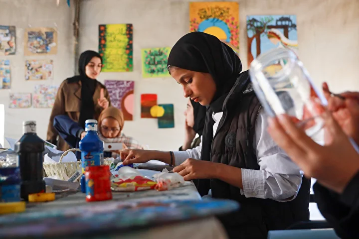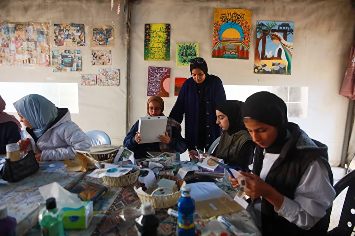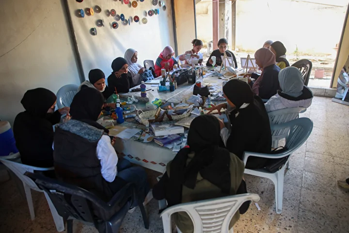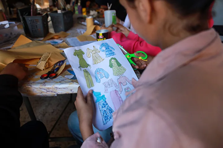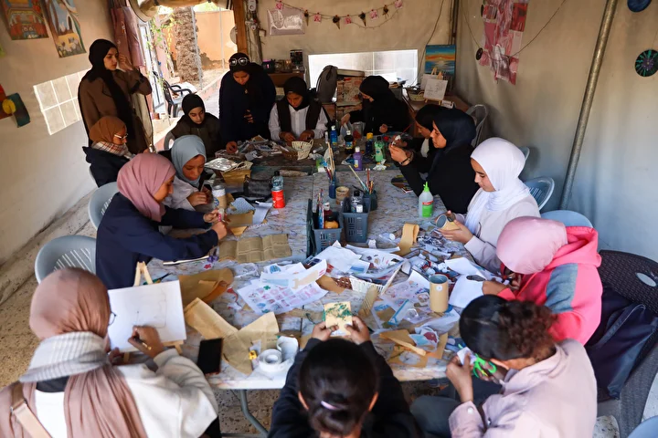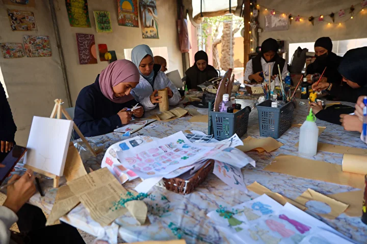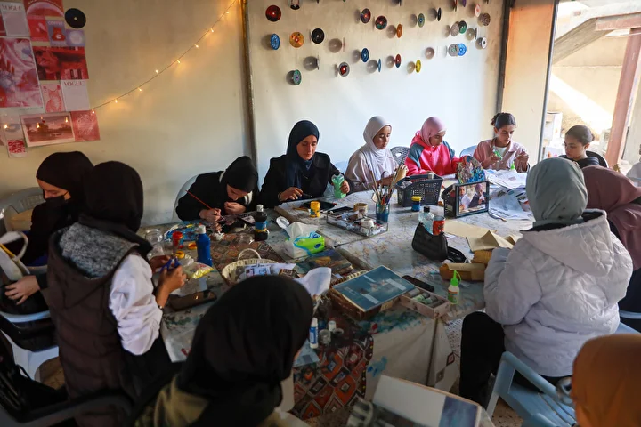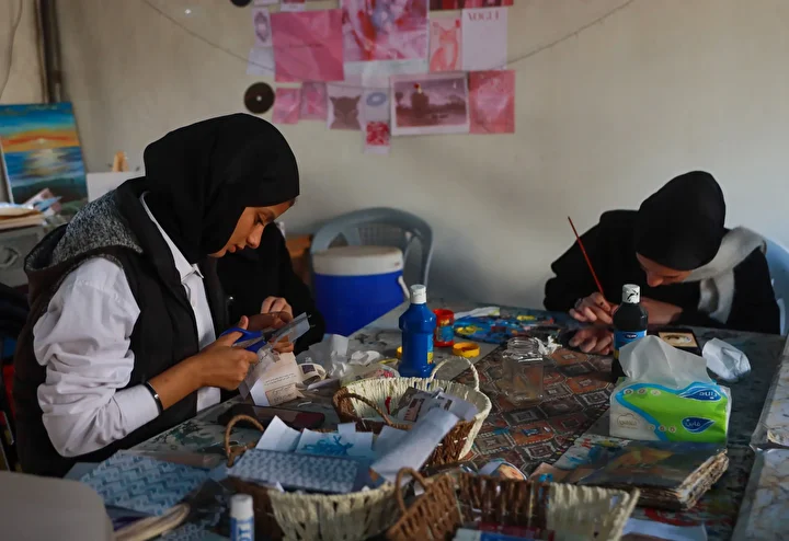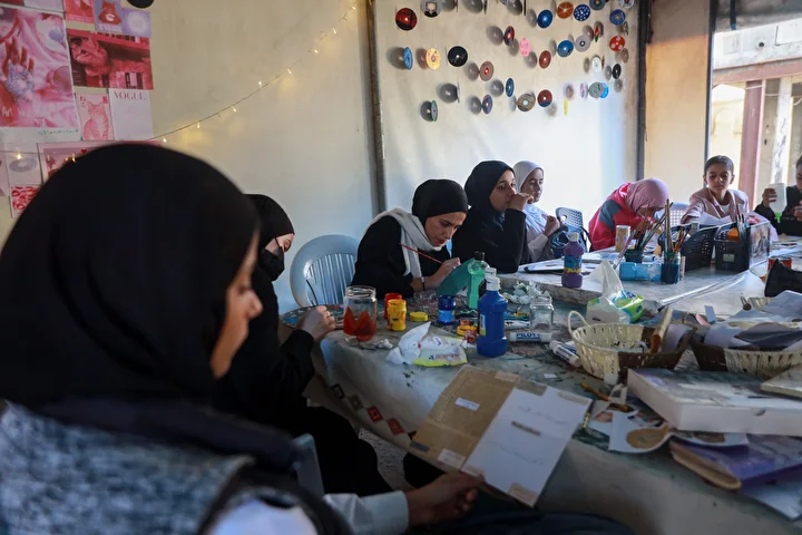 Filistinli genç kadın Rahaf eş-Şeyh Ali (26), Gazze Şeridi’nin orta kesiminde yer alan Deyr Belah kentinde yerinden edilmiş kız çocukları için el işi ve kağıttan geri dönüşüm atölyeleri düzenliyor. Genç kadın açtığı atölyeler vasıtasıyla, İsrail'in Gazze Şeridi'ne düzenlediği saldırıların çocuklar üzerindeki etkisini azaltma, sosyal gelişimlerine katkı sağlama ve yaşadıkları zor koşullardan psikolojik olarak uzaklaşmalarını amaçlıyor.