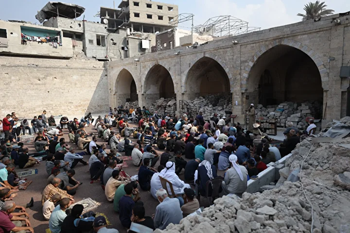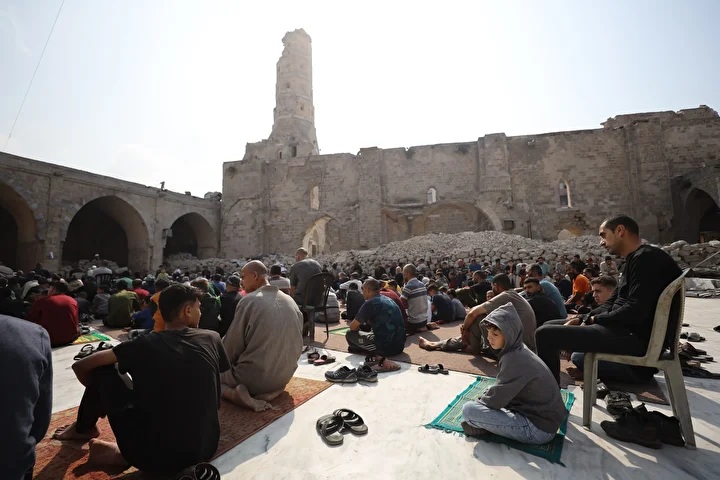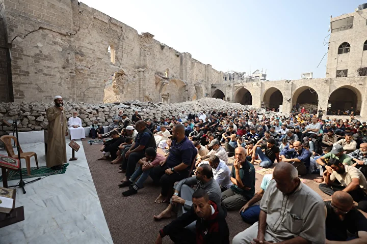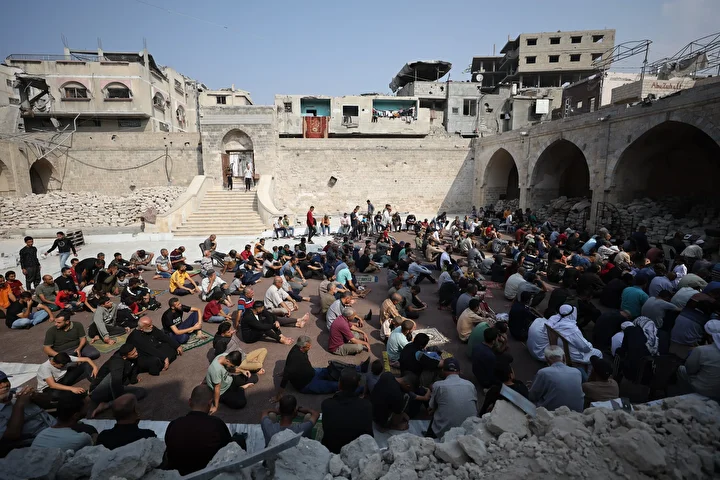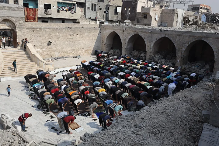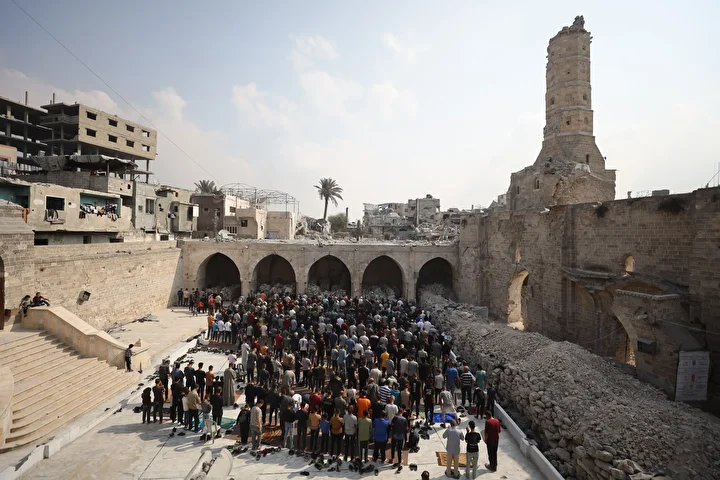 İsrail ordusunun ateşkesin ardından çekildiği Gazze kentinde cuma namazı kılındı. Bölge sakini çok sayıda Filistinli, İsrail saldırılarında yıkıma uğrayan Büyük Ömer Camisi'nde namazını kıldı.