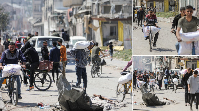 İşgalci İsrail'in, 7 aydır aralıksız saldırıları ve kuşatması nedeniyle ağır yıkım ve kıtlığın yaşandığı Gazze Şeridi'nin kuzeyine 'kısıtlı" insani yardım ulaştırıldı. Filistinliler, Gazze kentine ulaşan yardım tırlarından dağıtılan undan alabilmek için bölgeye akın etti.