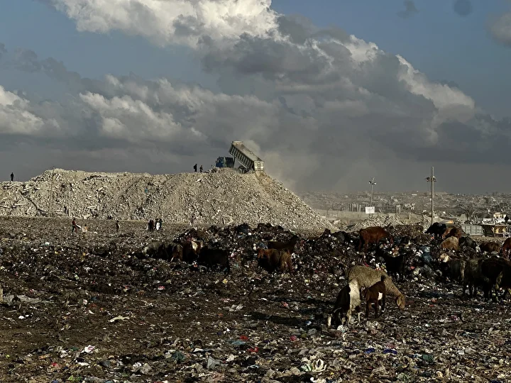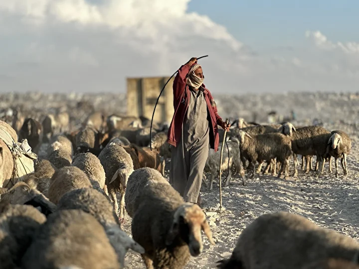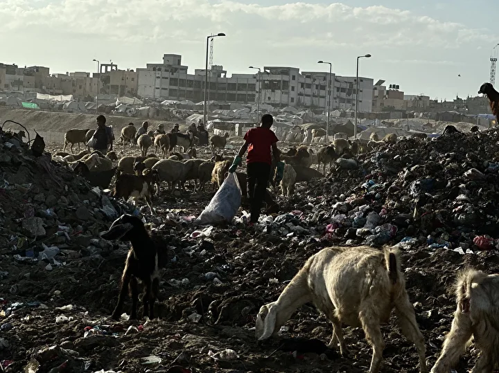 İşgal altındaki Gazze Şeridi’nin güneyindeki Han Yunus kentinde, bölgede tarım arazilerinin çatışmalar nedeniyle tahrip olması üzerine Filistinli çobanlar, hayvanlarını otlatmak için rastgele oluşan çöp döküm alanına yönelmek zorunda kaldı. Çobanlar, yıkımın ve kıtlığın gölgesinde hayvanlarını besleyebilmek için zorlu şartlarla mücadele ediyor.
