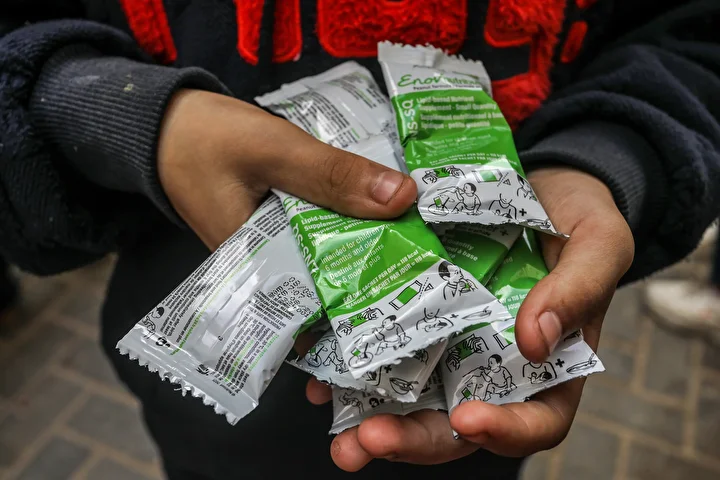 Gazze Şeridi’nin güneyindeki Han Yunus kentinde faaliyet gösteren bir yardım kuruluşu, 1 ila 5 yaş arasındaki Filistinli çocuklara, gıda yetersizliği ve bebek maması eksikliğinin neden olduğu beslenme bozukluklarını gidermek amacıyla beslenme takviyeleri dağıtıyor. Bölgede birçok çocuğun yetersiz beslenme nedeniyle fiziksel gelişimi, zihinsel kapasitesi ve büyüme süreci olumsuz etkileniyor. Bu durum, İsrail ablukası, geçiş noktalarının kapalı olması ve ilaç girişinin engellenmesinin doğrudan bir sonucu olarak değerlendiriliyor.