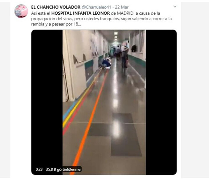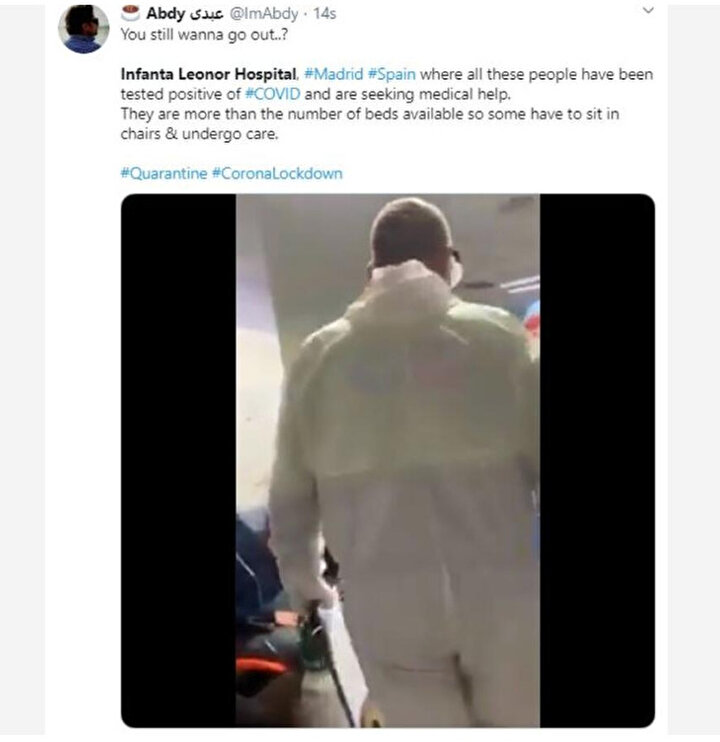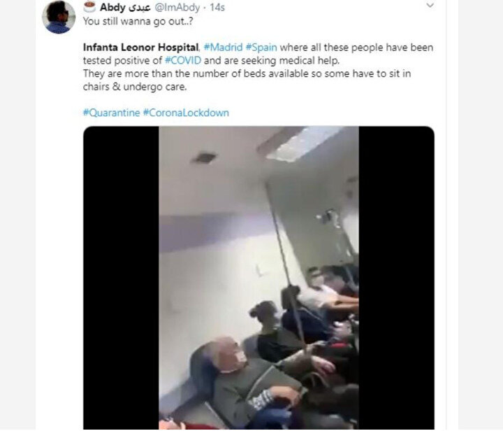Öte yandan İspanya'daki hastaneden gelen görüntüler dünyayı ayağa kaldırdı. Ülkedeki vaka sayılarındaki hızlı artış ülkedeki sağlık sistemi zor durumda bırakıyor.