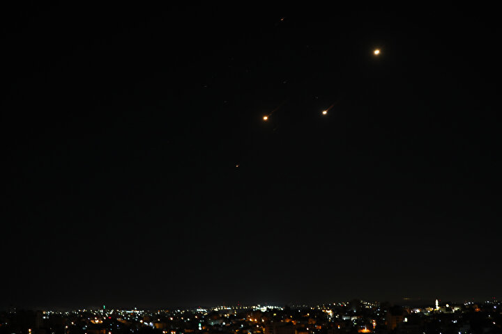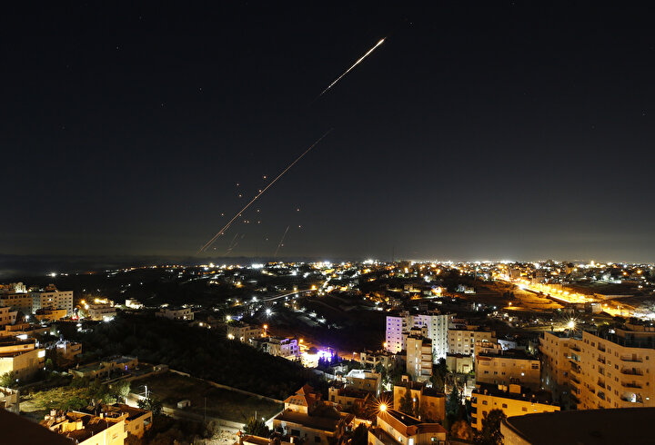 İsrail'in saldırılarına devam ettiği İran, art arda iki saldırıda 25 civarında füzeyle yeni bir misilleme saldırısı düzenledi. İran'dan ateşlenen füzeler, Batı Şeria'nın El Halil kentinden görüntülendi.
