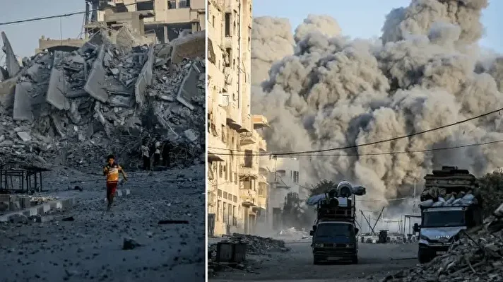 İsrail savaş uçakları, Filistinlileri güneye sürmek için Gazze kentinde özellikle çok sayıda ailenin yaşadığı çok katlı yüksek binaları yıkmaya devam ediyor.