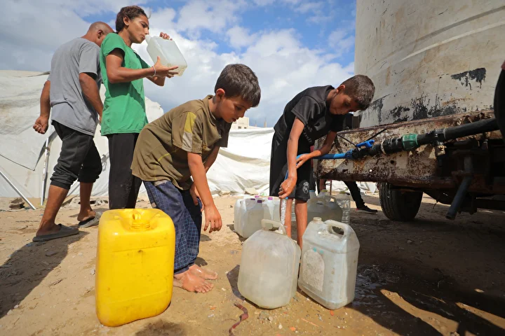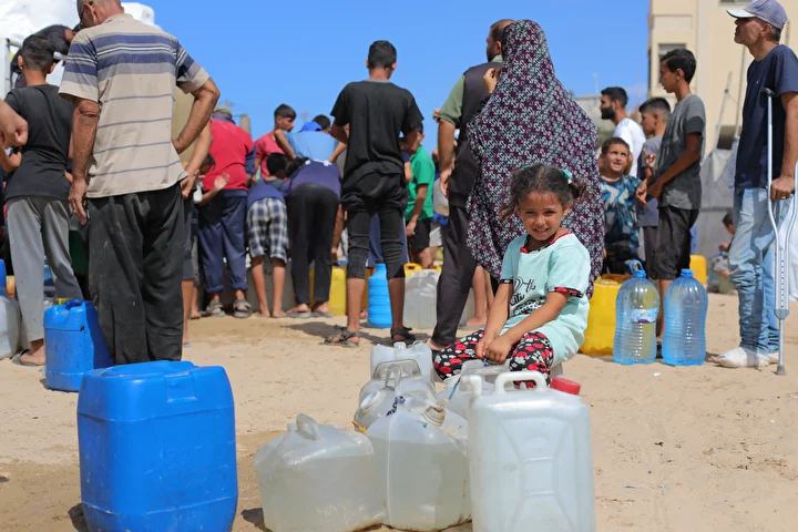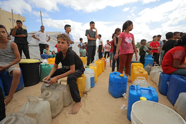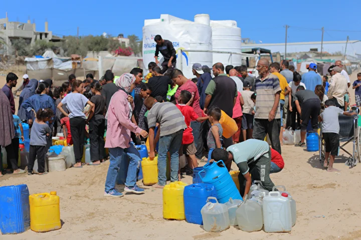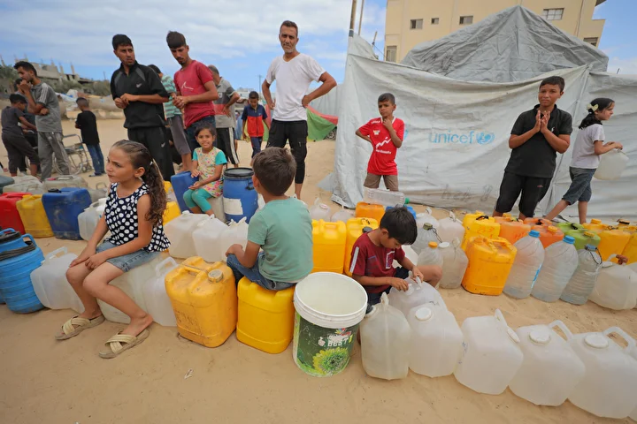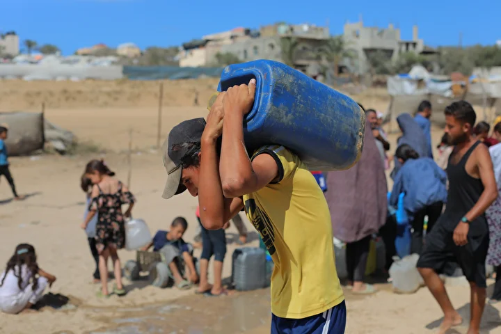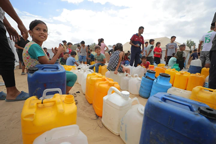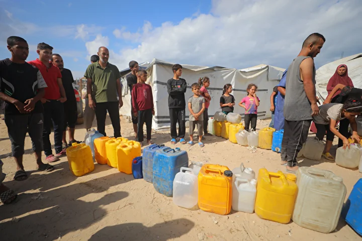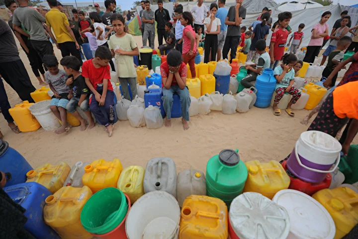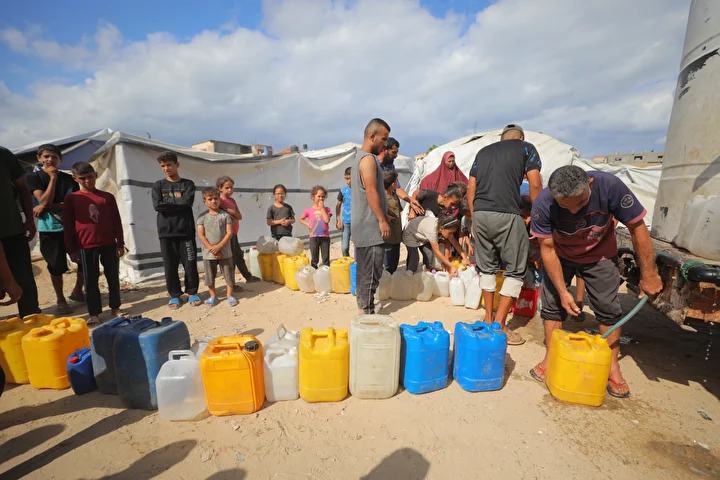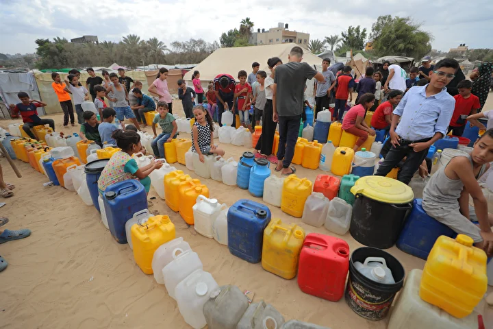 Abluka altındaki Gazze Şeridi’nde barınma, gıda ve su gibi en temel ihtiyaçlara erişemeyen Filistinliler, son derece zorlu koşullarda yaşam mücadelesi veriyor. Yerinden edilen siviller, Gazze'nin orta kesiminde yer alan Zavida bölgesinde bir yardım kuruluşuna ait tankerlerden su alabilmek için kuyruğa girdi.