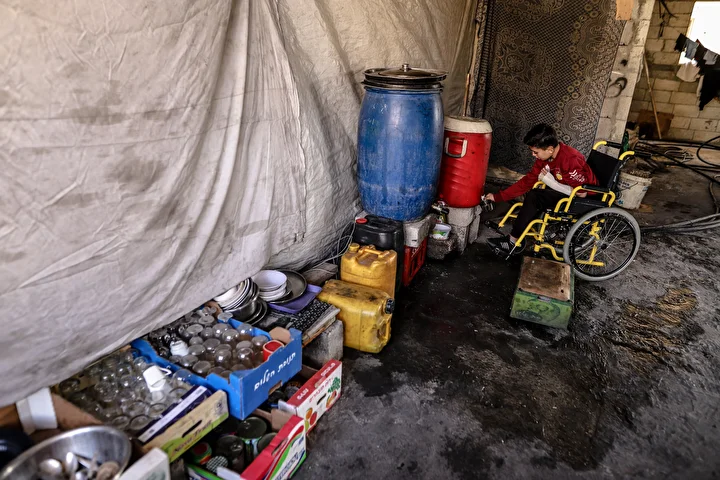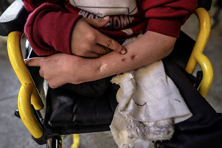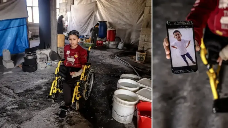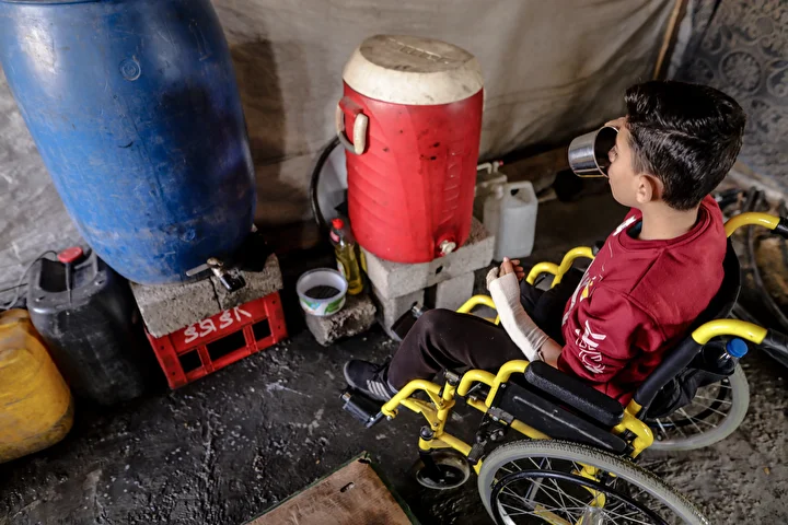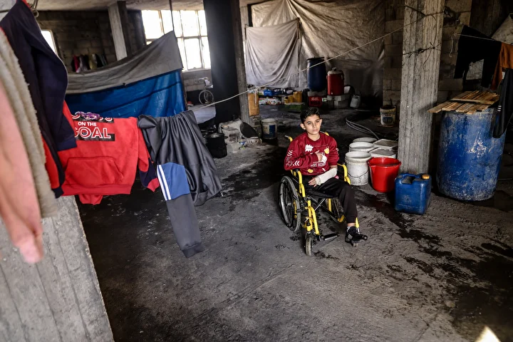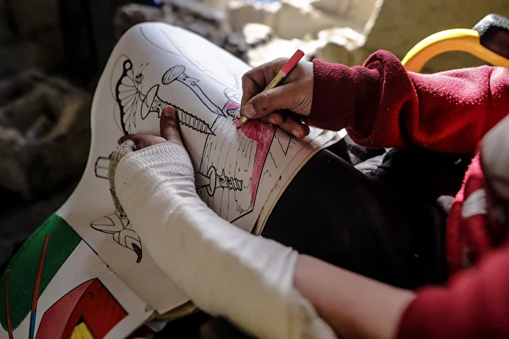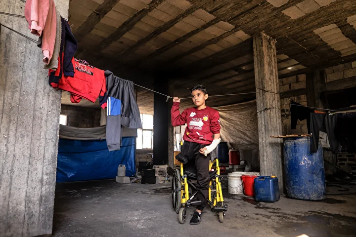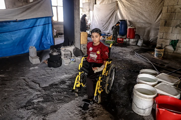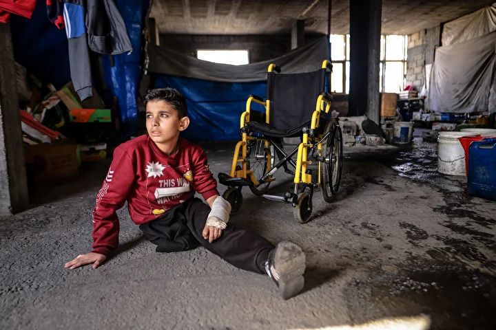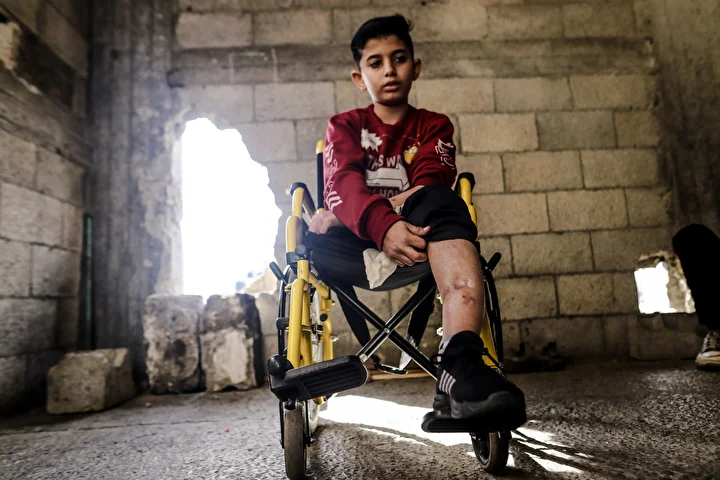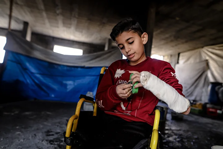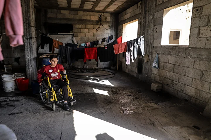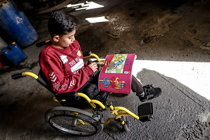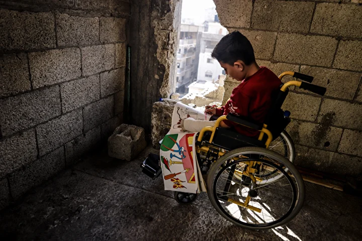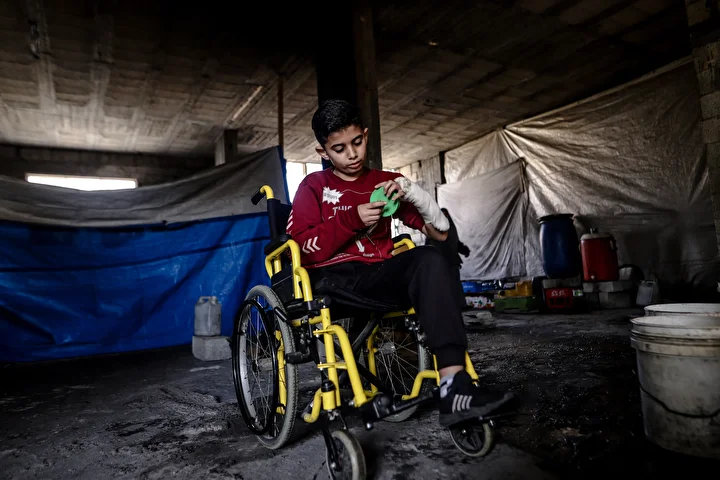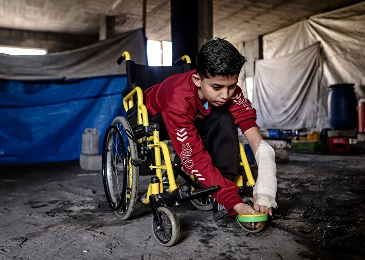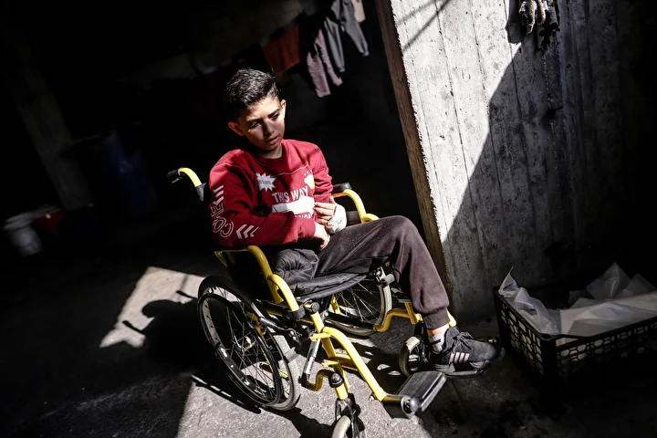 İsrail'in Gazze'nin El-Zeytun Mahallesi’ne düzenlediği saldırıda bir bacağını kaybeden 12 yaşındaki Muhammed el-Mubayyid, tekerlekli sandalyeye mahkum oldu. Aynı saldırıda sol bacağında ve sol elinde ciddi kırık ve yaralar oluşan Mubayyid, babası ve diğer yakınlarını kaybetmenin üzüntüsünü yaşıyor. Dünya Engelliler Günü'nde vaktini resim yaparak ve uzun tedavi sürecinde kendi elleriyle yaptığı oyuncakla oynayarak geçiren Mubayyid, tüm zorluklara rağmen yaşama tutunmaya çalışıyor.