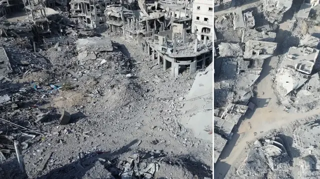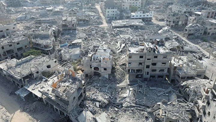 Gazze Şeridi’nin güneyindeki Han Yunus kent merkezinde, ateşkesin ardından yaşanan geniş çaplı yıkım havadan görüntülendi. İsrail ordusunun çekilmesinin ardından Celal Caddesi, Ehl-i Sünnet Camisi Meydanı ve Ebu Hamid Kavşağı çevresinde çok sayıda bina ve altyapının tamamen yıkıldığı görüldü.
