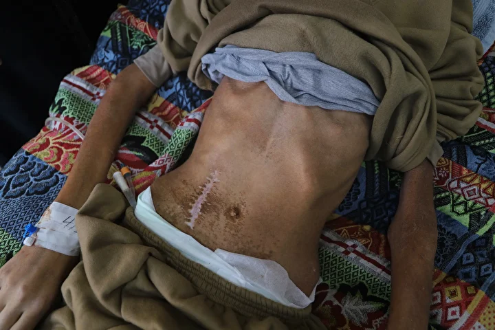 İsrail'in Gazze Şeridi’nin orta kesiminde bulunan bir yardım dağıtım noktasına düzenlediği saldırıda başından vurulan Filistinli Hamed Abdulkadir, geçirdiği ameliyatların ardından tamamen felç kaldı. Başından aldığı ağır yaralanma sonucu kafatasında ciddi bir hasar oluşan ve görme yetisini yitiren Hamed aynı zamanda yetersiz beslenmeyle de mücadele ediyor. İsrail ablukası nedeniyle yaşanan ilaç ve tıbbi malzeme yetersizliği altında, Deyr Belah kentindeki Aksa Şehitleri Hastanesi'nde kısıtlı tedavi imkanlarıyla hayatta kalma mücadelesi veriyor.