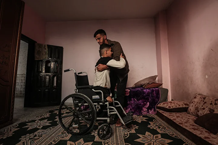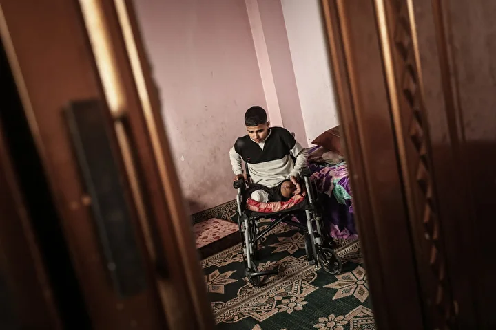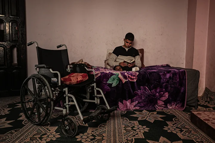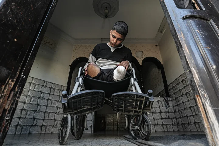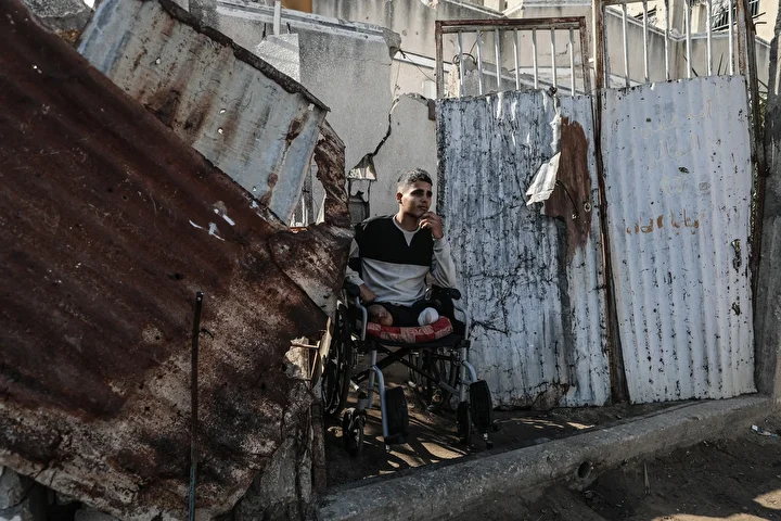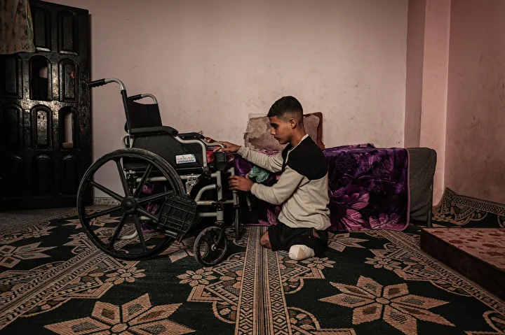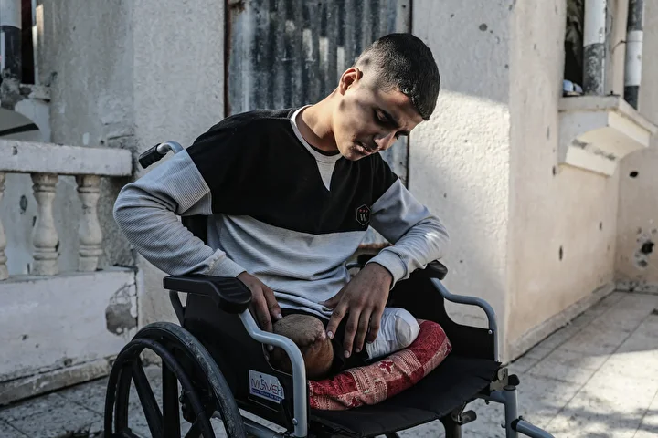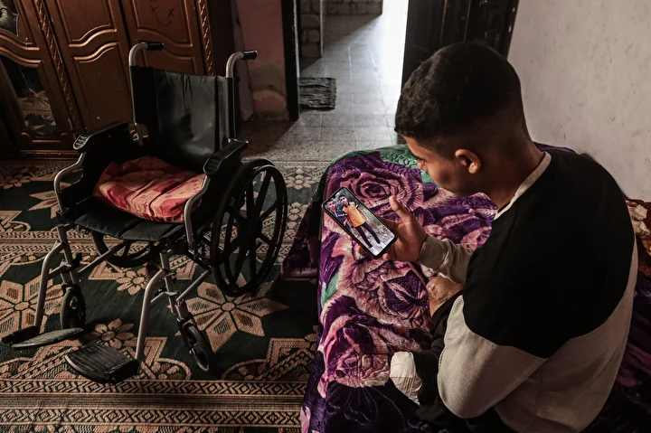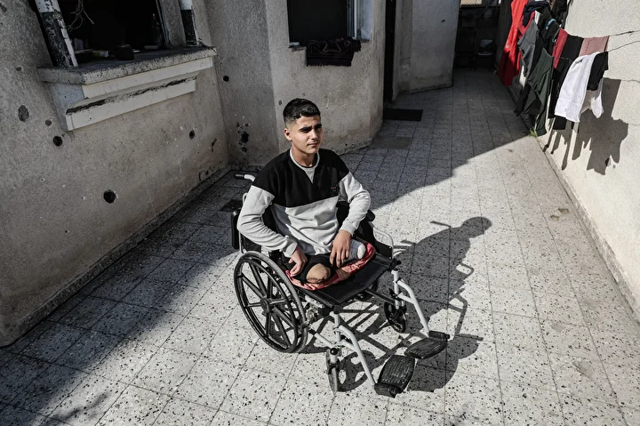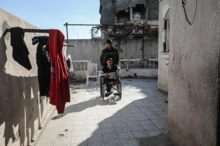 3 Aralık Dünya Engelliler Günü'nde Gazzeliler, İsrail saldırılarının kendilerinde bıraktığı ağır hasarla yaşamlarını sürdürmeye çalışıyor. Gazze Şeridi’nin orta kesimindeki Bureyc Mülteci Kampı’nda yaşayan 16 yaşındaki Hasan Ferhan el-Avvavde, savaşın yol açtığı ağır kuşatma ve gaz tedarikindeki sıkıntı nedeniyle ailesine yemek pişirmede yardımcı olmak için odun topladığı sırada yaşanan patlamada iki bacağını kaybetti. Tıbbi ekipman sıkıntısının had safhaya çıktığı bölgede tekerlekli sandalyeye mahkum kalan Hasan, tedavisini sürdürerek eski sağlığına kavuşup yeniden eğitimine dönebileceği günlerin hayalini kuruyor.