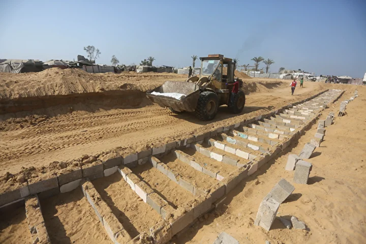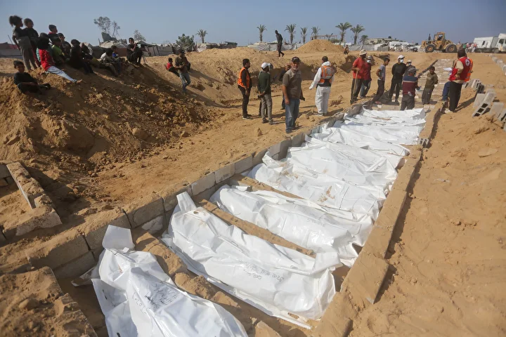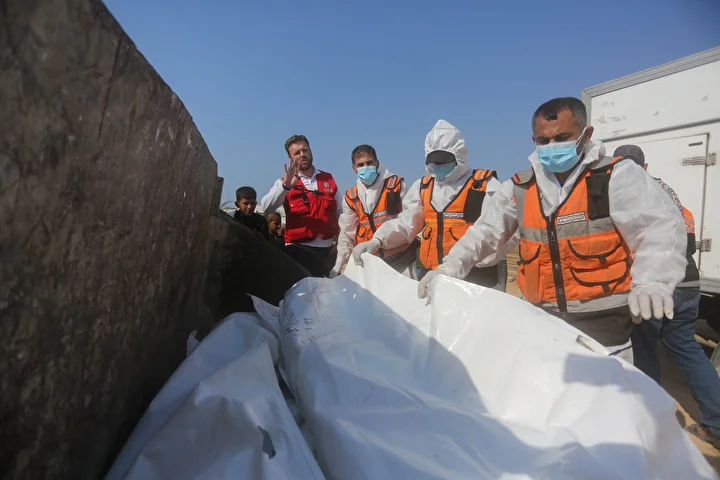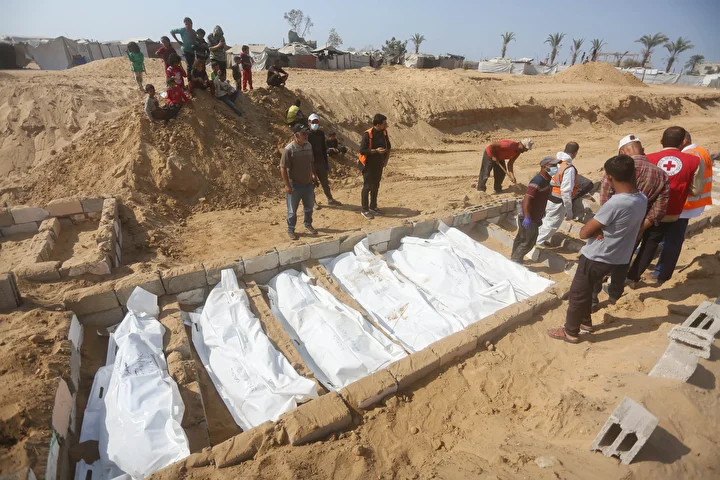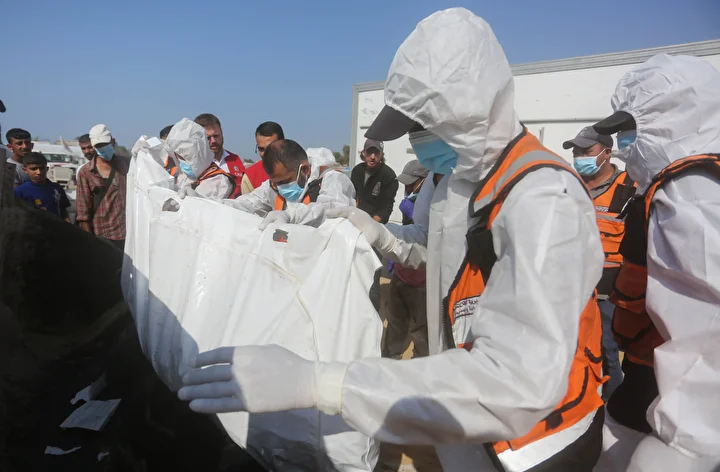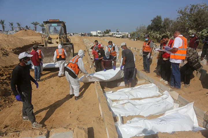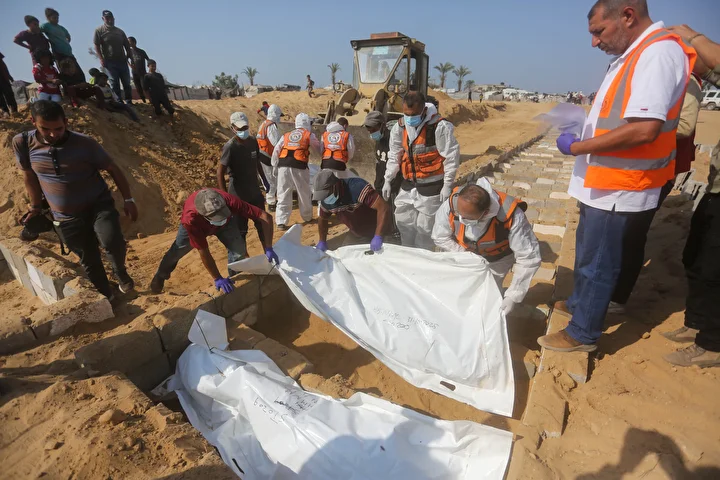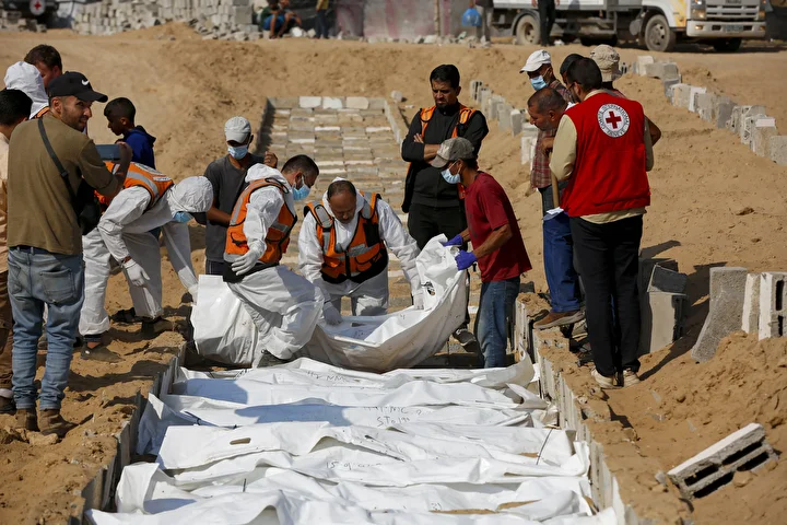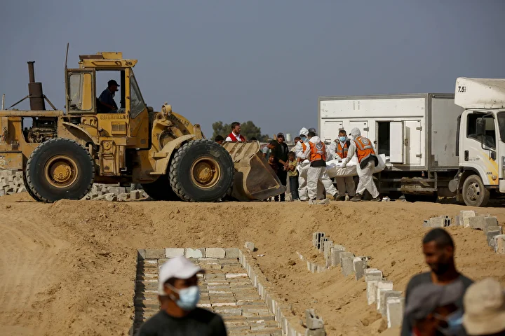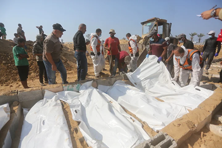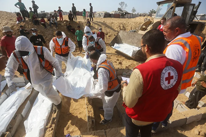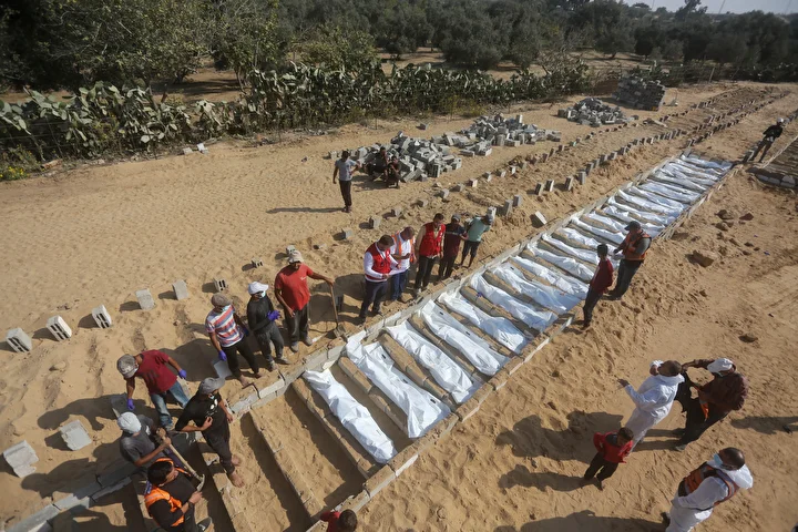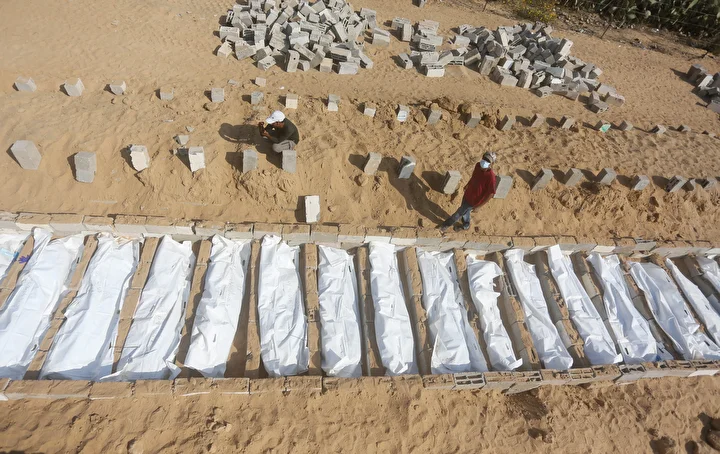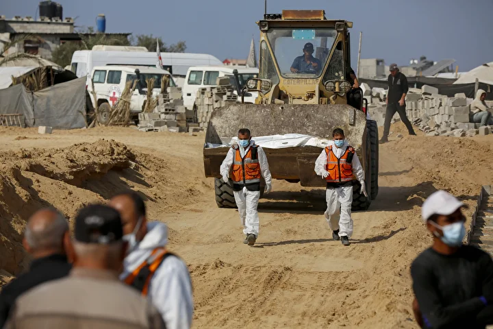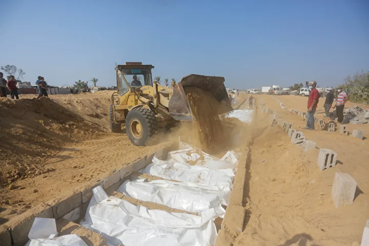 Ateşkes anlaşması kapsamında İsrail tarafından cenazeleri teslim ve kimliği tespit edilmeyen 24 Gazzellinin naaşı, Kızılhaç ve sivil savunma ekipleri tarafından Deyr Belah'ta defnedildi.