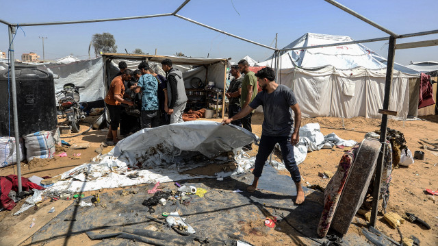 İsrail ordusu Gazze Şeridi'nin güneyindeki Han Yunus kenti batısında yer alan Mevasi bölgesinde yerinden edilmiş Filistinlilerin sığındığı çadırları hedef aldı. Saldırıda çok sayıda kişinin yaşamını yitirdiği ve yaralandığı bildirildi. Filistinliler, saldırının ardından hasar gören çadırları inceledi.