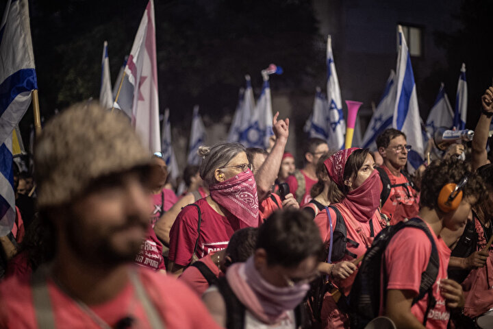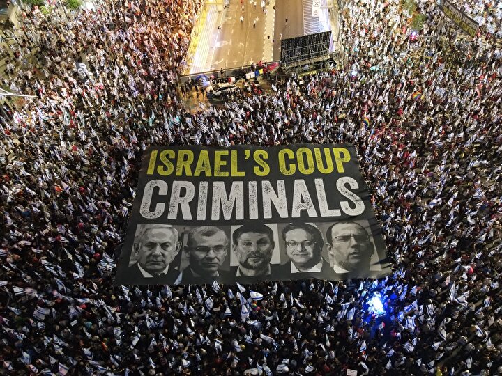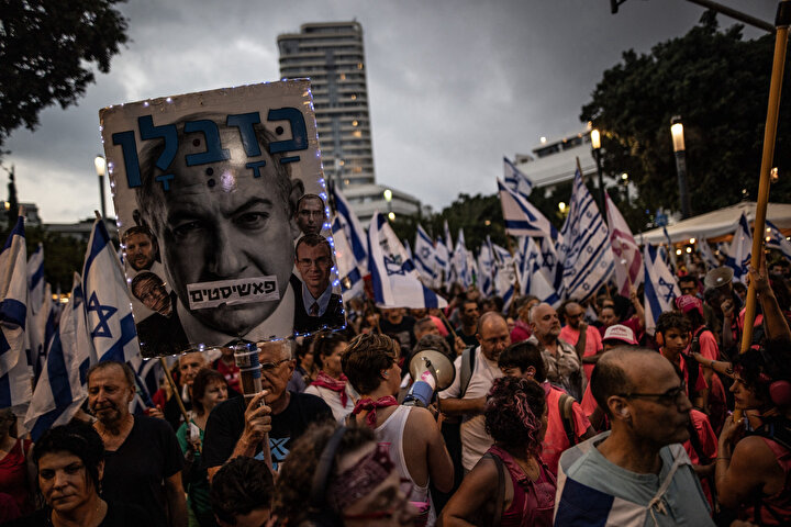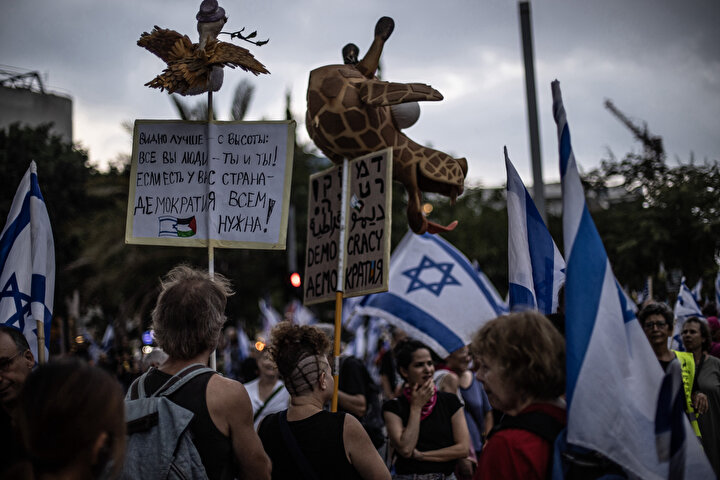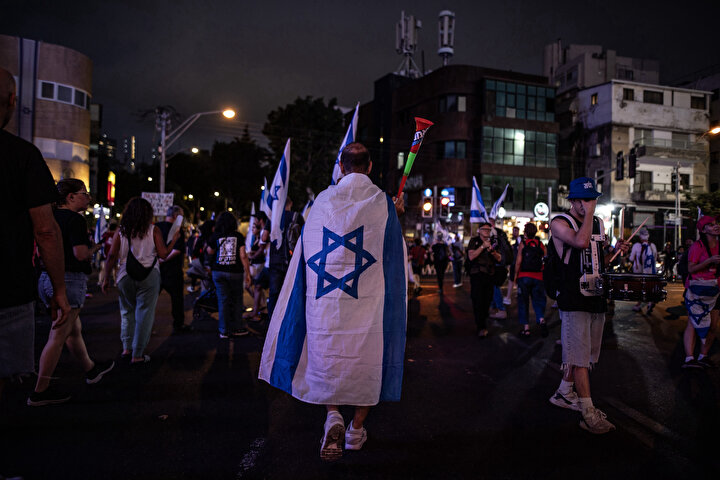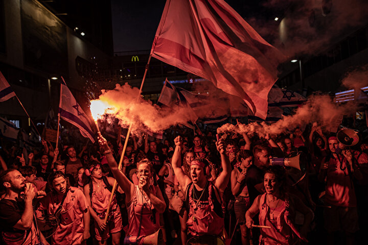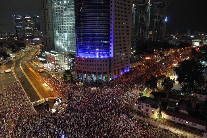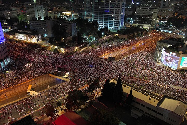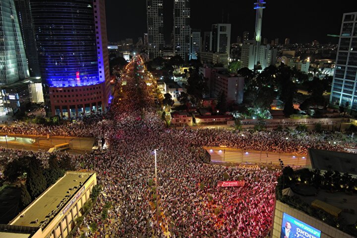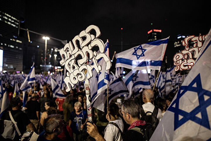 İsrail Başbakan Binyamin Netanyahu öncülüğündeki koalisyon hükümetinin yargı düzenlemesi kapsamında Yüksek Mahkemenin hükümet üzerindeki denetimini kaldıran yasa tasarısını Meclis'ten geçirmesini protesto eden İsrailliler ülke genelinde sokaklara indi. Her hafta olduğu gibi en yoğun katılımlı gösteriye ev sahipliği yapan Tel Aviv'de protestocular, Kaplan Caddesi'nde toplandı.