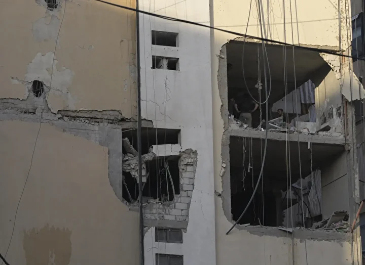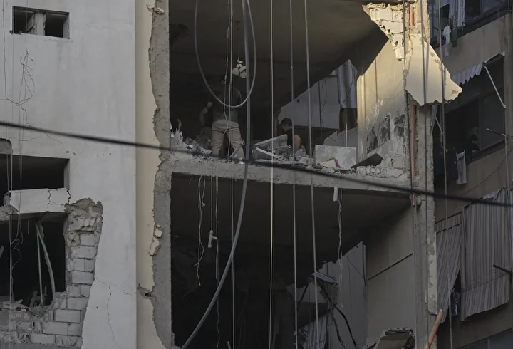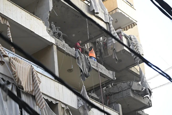 Sosyal medyaya yansıyan görüntülerde, İsrail'in hava saldırılarında büyük yıkıma uğrayan Beyrut'un güney banliyösü Dahiye'de vurulan bir binadan dumanların yükseldiği görüldü.