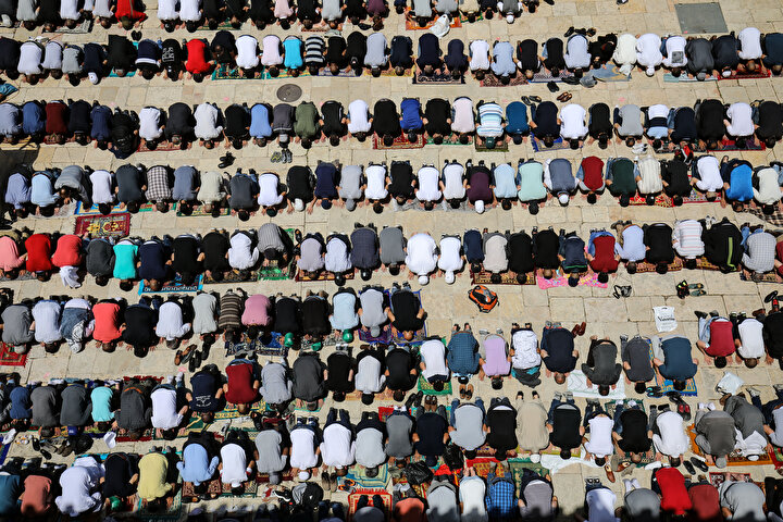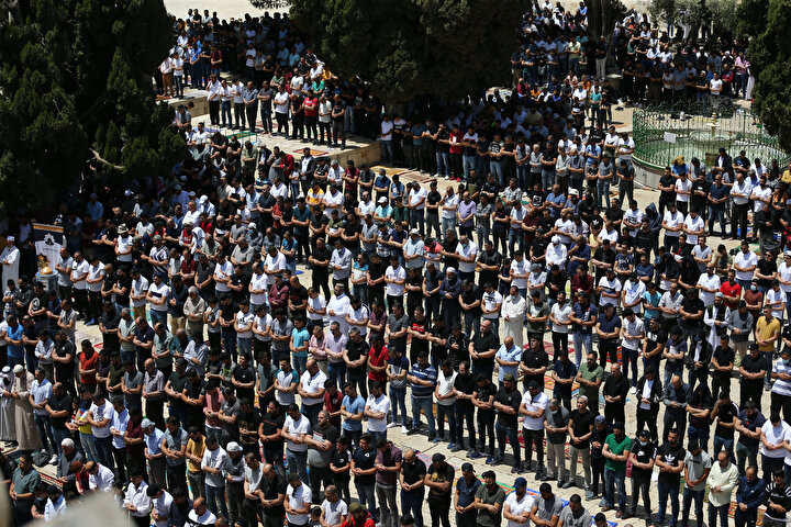 Kudüs İslami Vakıflar İdaresinden yapılan yazılı açıklamaya göre, yaklaşık 60 bin Filistinli cuma namazını Mescid-i Aksa'da kıldı.