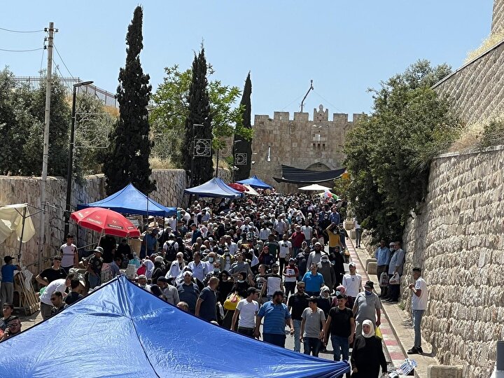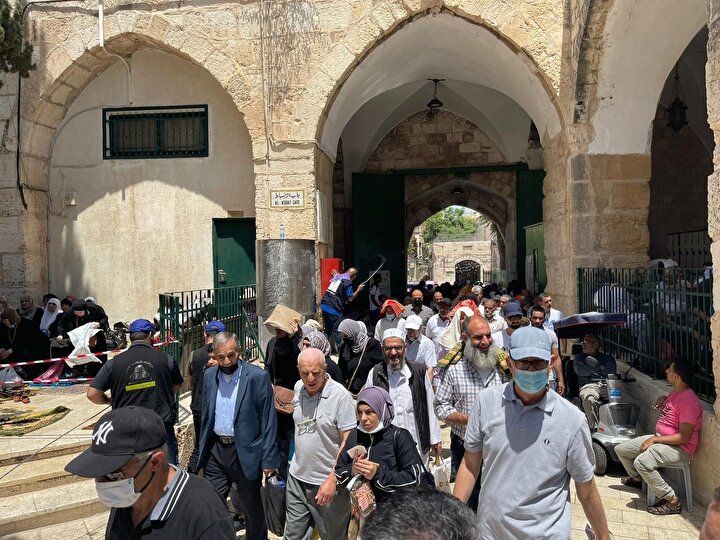 Bu sırada Mescid-i Aksa'nın kapılarında ve Eski Şehir olarak bilinen Kudüs'ün sur içi bölgesinde çok sayıda İsrail polisi hazır bekledi.