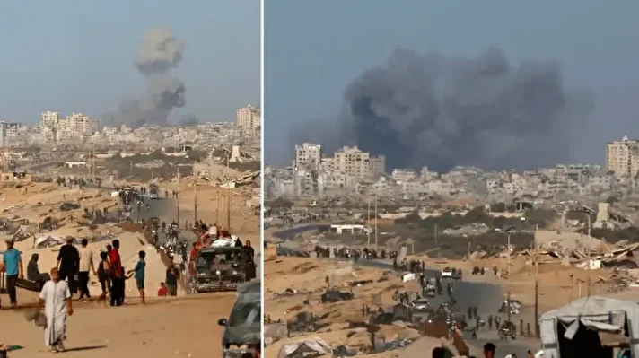 İsrail ordusunun Gazze Şeridi’nin kuzeyindeki bir çok bölgesine düzenlediği saldırılar geniş çaplı yıkıma yol açarken, bölgeden yoğun dumanlar yükseldi. İsrail'in saldırıları sonucu Gazze kentinden yükselen dumanlar, Deyr Belah’tan görüntülendi.