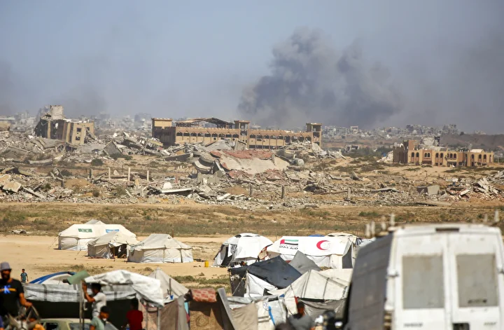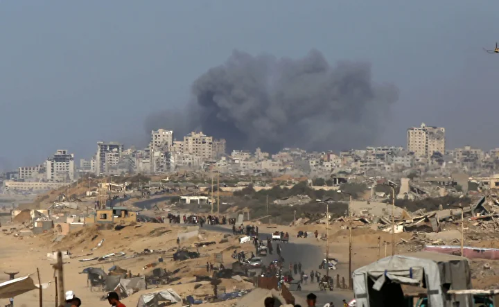 İsrail'in saldırıları sonucu Gazze kentinden yükselen dumanlar, Deyr Belah’tan görüntülendi.