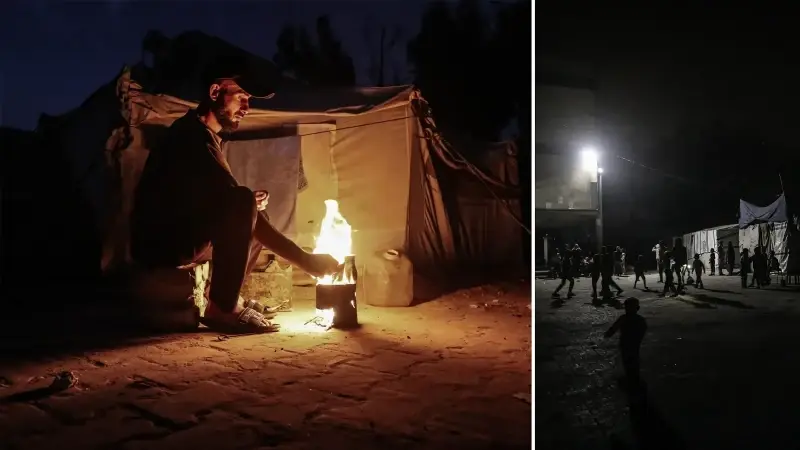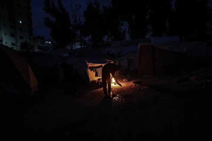 İsrail'in Gazze Şeridi'ne yönelik saldırılara başladığı 7 Ekim 2023'ten bu yana devam eden elektrik kesintisi nedeniyle Filistinliler, karanlıkla mücadele etmeye çalışıyor. Gazze Şeridi’nin orta kesimindeki Bureyc Mülteci Kampı’nda yaşayan Filistinliler, zor şartlar altında karanlığa bürünen sokaklarda ve yıkılan binaların arasında günlük yaşamlarını sürdürüyor.