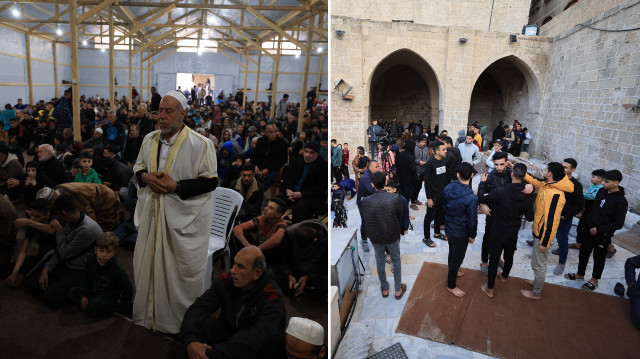 Katil İsrail'in saldırı ve ablukası altındaki Gazze kentindeki Filistinliler, Ramazan bayram namazını saldırıları sonucu ağır hasar gören tarihi 'Büyük Ömeri Camii' diğer bir adıyla Gazze Ulu Camii'nde kıldı.