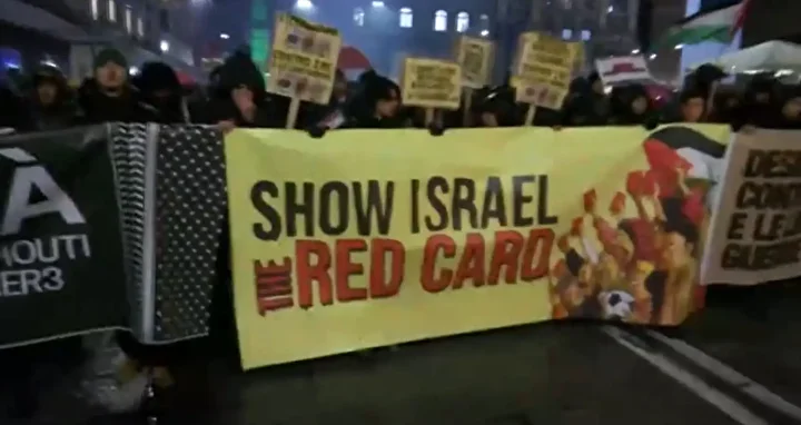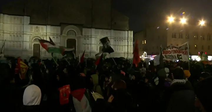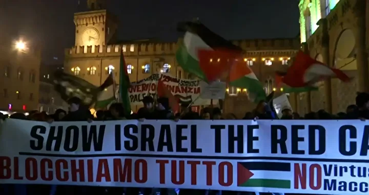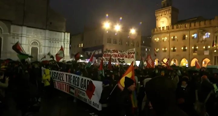 Maçın oynanacağı PalaDozza çevresinde yaklaşık 500 güvenlik görevlisi konuşlandırıldı, ancak Filistin’e destek yürüyüşlerine katılımın kısa sürede 5.000’i aştığı bildirildi.