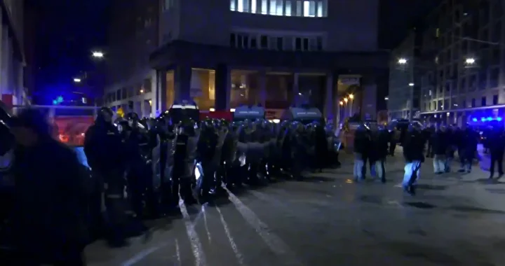 Maç öncesinde günler öncesinden başlayan tepkiler ve tartışmalar bu akşam büyük boyuta ulaştı. Göstericiler polis hattına havai fişek, patlayıcı ve boya kutuları fırlatırken, polis tazyikli su ve göz yaşartıcı gazla müdahale etti.