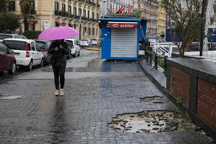 İtalya’nın Campania bölgesi genelinde son günlerde devam eden şiddetli yağışların yol açtığı hasar ve aksaklıklar nedeniyle Campania Bölgesel Sivil Savunma Kurumu, hava durumu uyarısını 24 saat daha uzattı. Napoli kentinde etkili olan yoğun yağışlar sonucu kaya parçalarının çökmesiyle hasar gören bir duvar güvenlik çitiyle çevrildi.