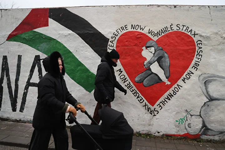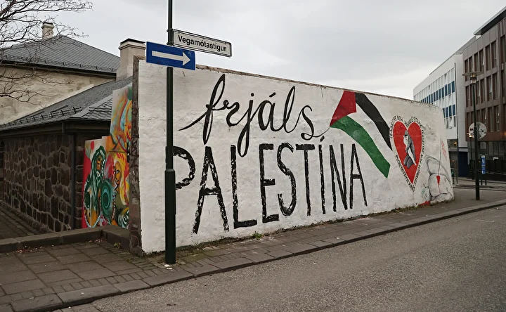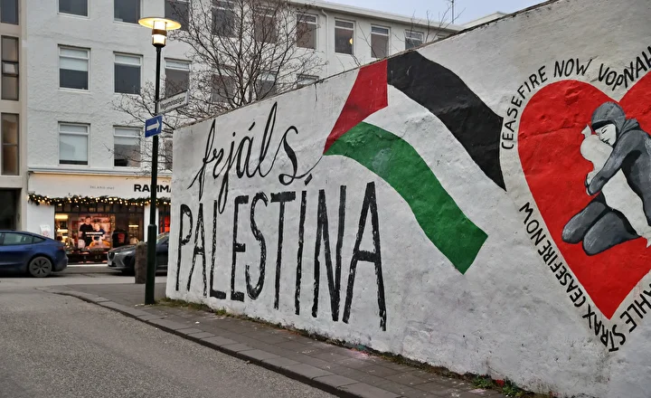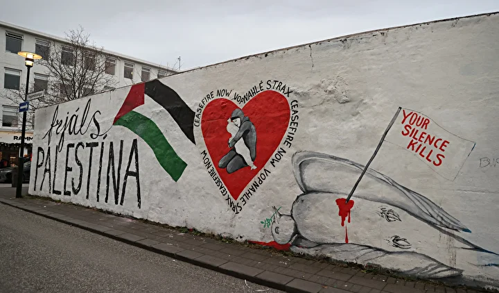 İzlanda'da, İsrail'in Gazze'ye düzenlediği saldırıları protesto etmek ve Filistinlilere destek vermek için eski cezaevinin duvarına çizilen grafiti, görenlerin dikkatini çekiyor.