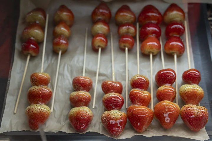 Japonya’da kış sezonunun en sevilen lezzeti olan çilekler, kusursuz görünümleri ve yoğun tatlarıyla pastanelerin vitrinlerini süslüyor.