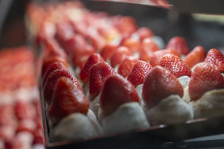 Özenle yetiştirilen Amaou ve Tochiotome gibi türler, tatlılarda parlak renkleriyle öne çıkarken ülkenin çileğe verdiği hassasiyet her porsiyonda kendini gösteriyor.