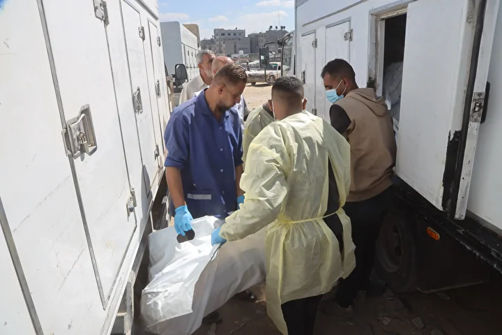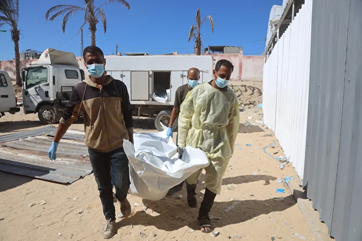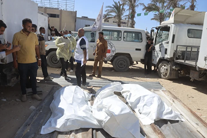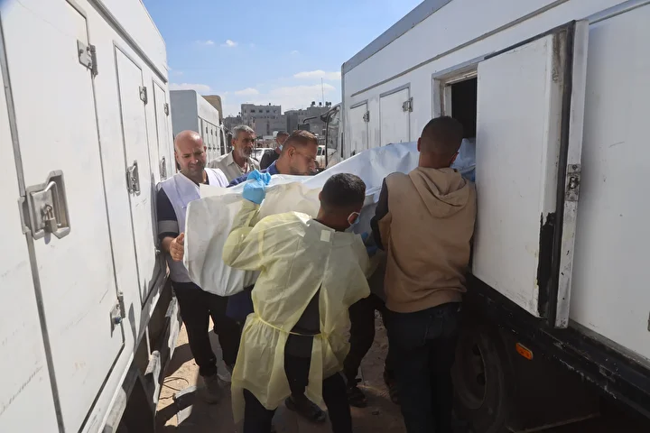 İsrail ile Hamas arasında yapılan ateşkes ve esir takası anlaşması kapsamında Uluslararası Kızılhaç Örgütü (ICRC)ekipleri, İsrail'in Gazze'den alıkoyduğu Filistinlilerin naaşlarını teslim aldıktan sonra Han Yunus kentindeki Nasır Hastanesi yakınında belirlenen alanda Filistin Sağlık Bakanlığı görevlilerine teslim etti.