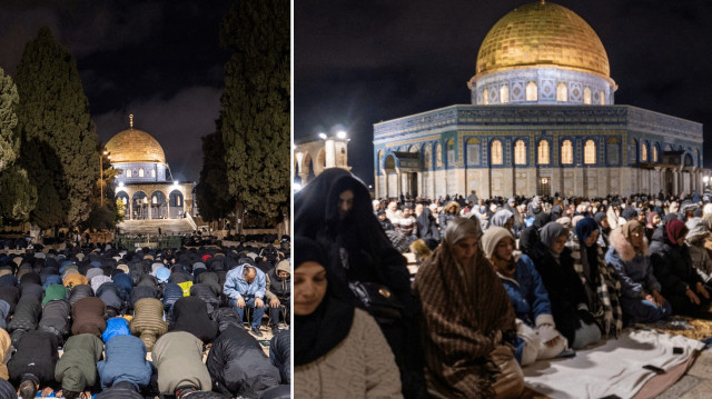 İsrail güçlerinin işgal altındaki Doğu Kudüs'te yer alan Mescid-i Aksa'ya yönelik kısıtlamalarına rağmen, binlerce Filistinli teravih namazını Aksa'nın avlusunda kıldı.