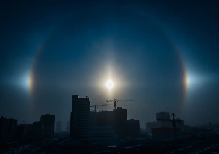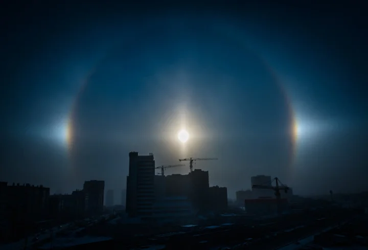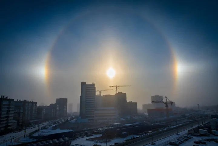 Rusya’nın Krasnoyarsk kentinde, hava sıcaklığının eksi 30 dereceye kadar düştüğü sırada nadir görülen bir atmosfer olayı olan "halo" gözlemlendi.