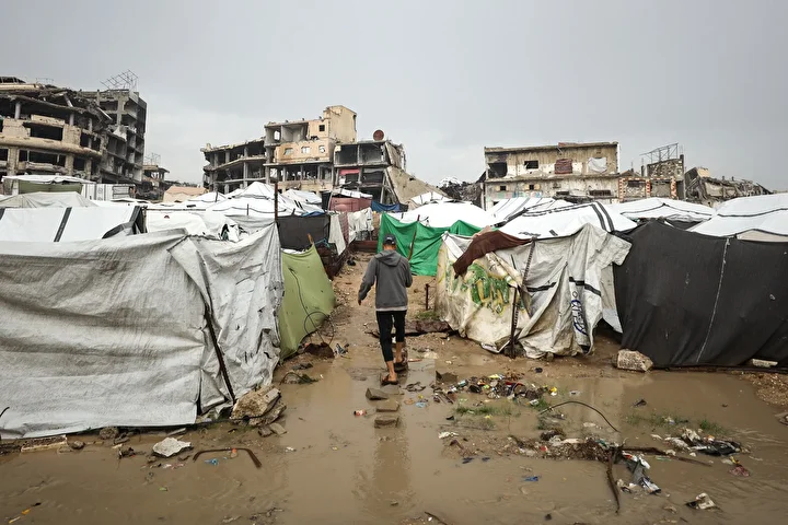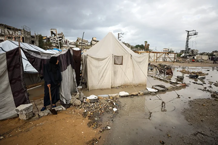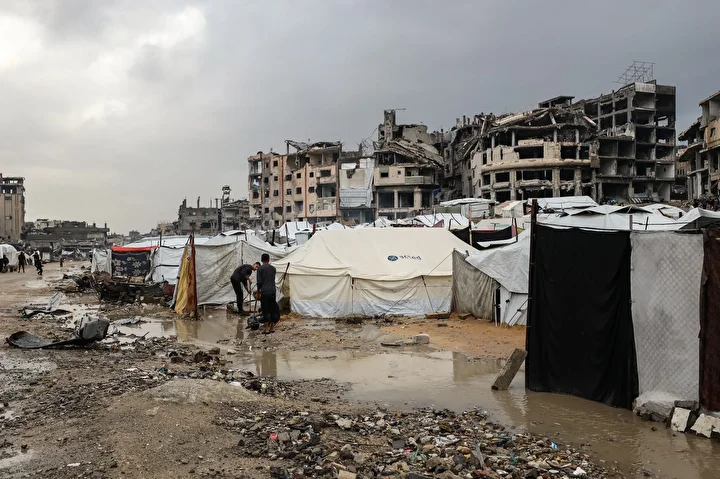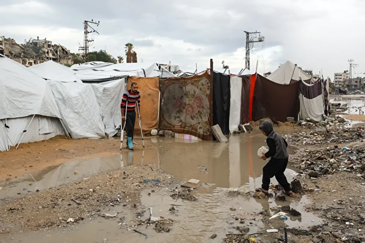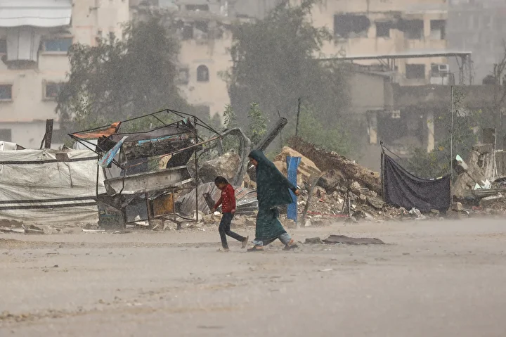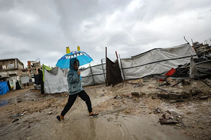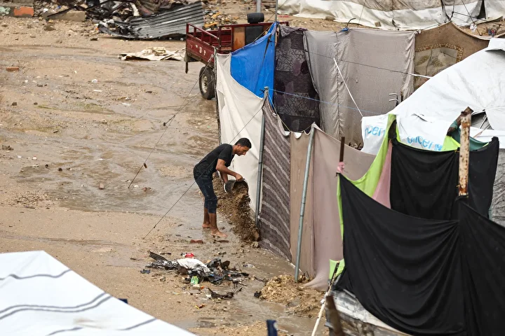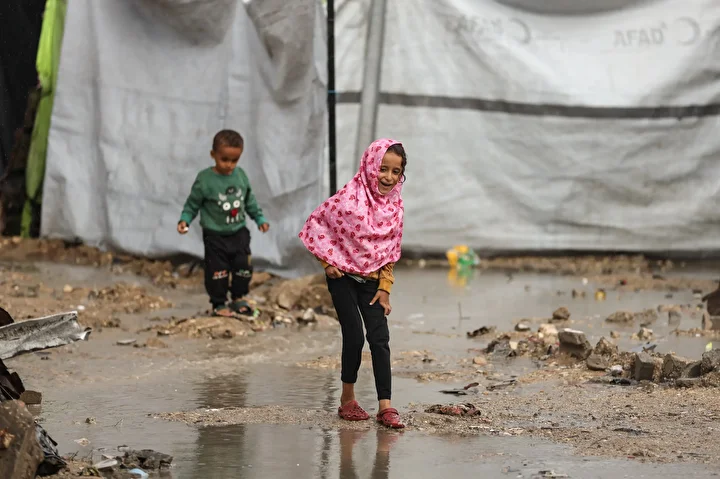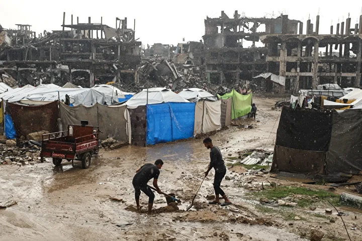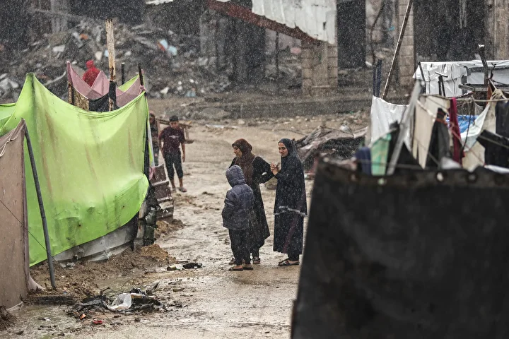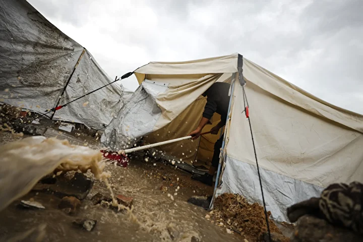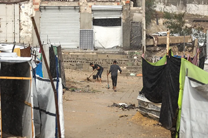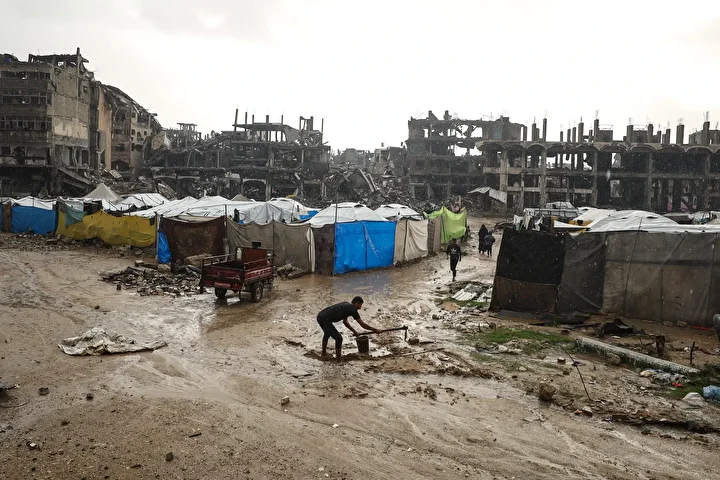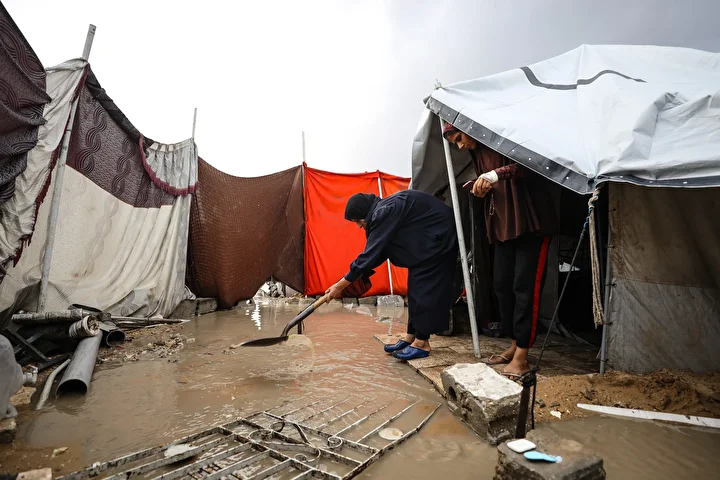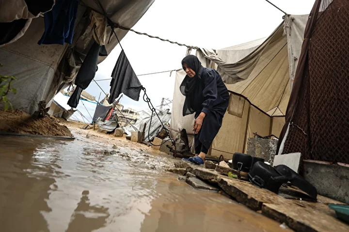 Gazze Şeridi’nin doğusundaki Şucaiyye Mahallesi’nde sağanak yağış nedeniyle yerinden edilmiş Filistinlilerin kaldığı birçok çadırı su bastı. Yağışın ardından su ve çamur birikintilerinin oluştuğu bölgede, İsrail’in saldırıları sonucu evleri yıkılan Filistinliler olumsuz hava koşullarıyla da mücadele ediyor.