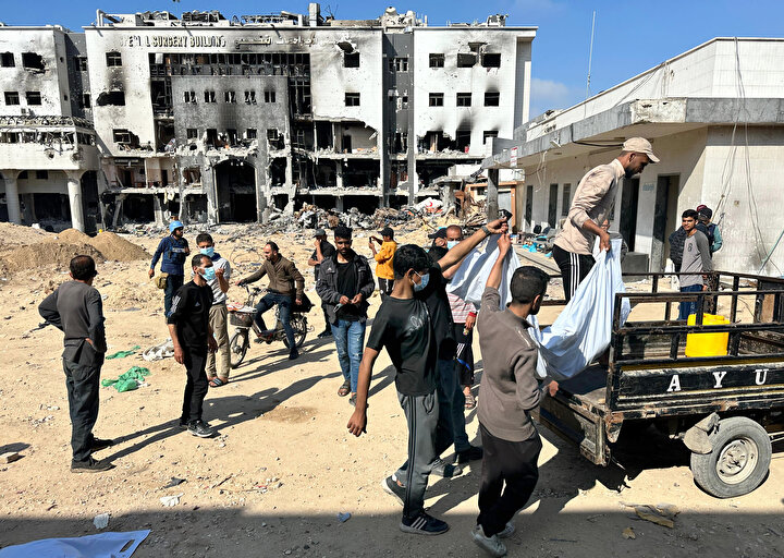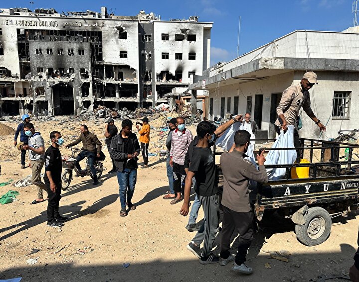 Katil İsrail ordusunun baskın düzenleyerek 2 hafta boyunca yüzlerce Filistinliyi öldürdüğü ve harabeye çevirdiği Gazze kentindeki Şifa Hastanesi avlusunda toplu mezar bulundu. Hastanenin avlusunun çeşitli yerlerinde onlarca çürümüş, yanmış, kesilmiş, toplu veya tek başına gömülmüş cesetlere rastlandı. Sağlık Bakanlığı Acil Durum Komitesi Üyesi Mutasım Salah, "Şifa Hastanesinde ilk toplu mezar, hastanenin ön bahçesinde gömülü 10 cenazenin bulunmasının ardından ortaya çıktı. Bulunan cenazelerin bir kısmı çürümüş durumda, bir kısmı da vücut parçalarından ibaret ve bazı cesetler kadınlara ait." diyerek İsrail vahşetinin büyüklüğünü açıkladı.