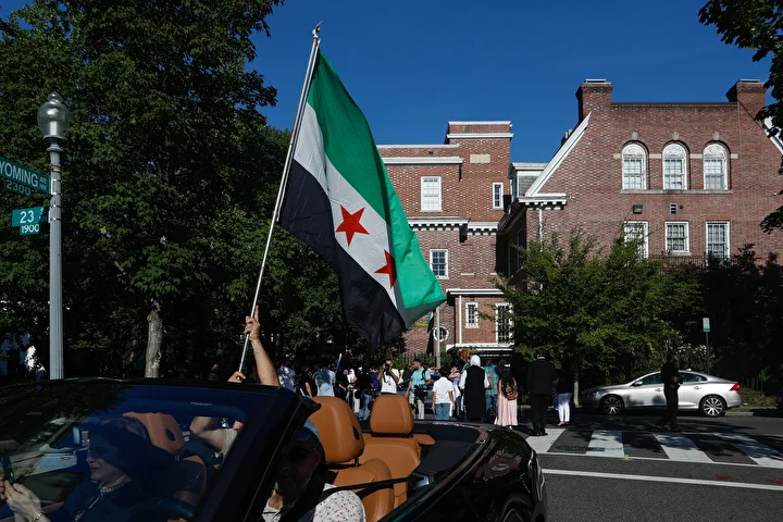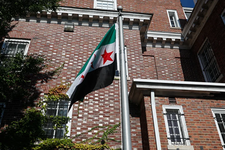 Suriye Arap Cumhuriyeti bayrağı, ABD'nin başkenti Washington'da bulunan Suriye Büyükelçiliği binasında göndere çekildi.