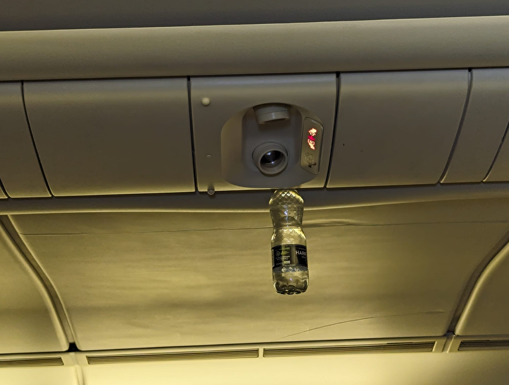 Drew Kessler, havaya fırlayan bir su şişesinin uçağın tavan panellerinin arasına, kafasını çaptığı noktanın hemen yanına sıkıştığını gösteren bir fotoğrafı da paylaşımına ekleyerek, "İşlerin çok daha kötü olabileceği ortada, kendimizi şanslı hissediyoruz" dedi.