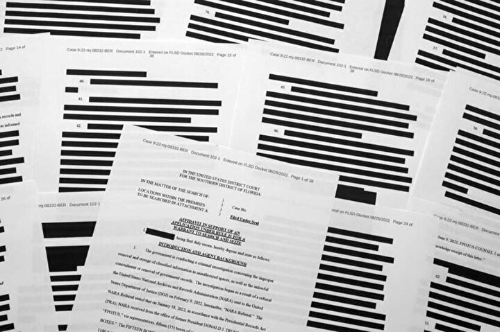ABD Adalet Bakanlığı, Federal Soruşturma Bürosu'nun (FBI), eski ABD Başkanı Donald Trump'ın Florida'daki Mar-a-Lago isimli evinde yaptığı aramaya ilişkin hazırladığı yeminli beyanı kısmen kamuoyuyla paylaştı.